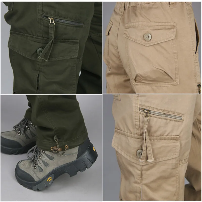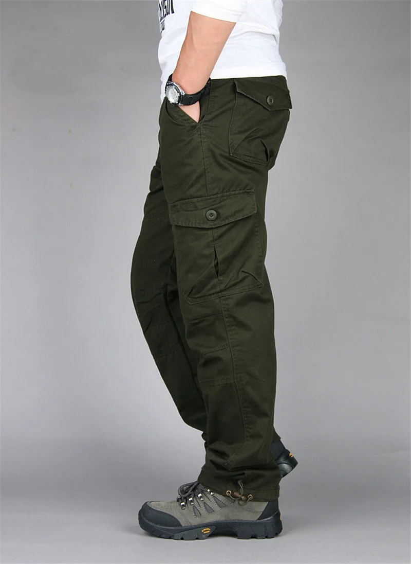 Брюки-карго мужские с множеством карманов, штаны в стиле милитари, армейские прямые Слаксы, повседневные длинные брюки, уличная одежда, 2020