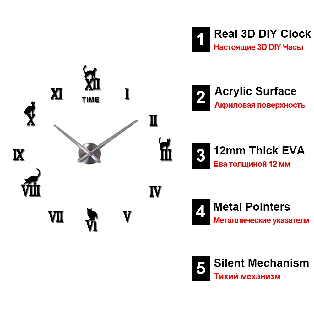 Большие настенные часы 3D сделай сам, большие кухонные часы, римски...