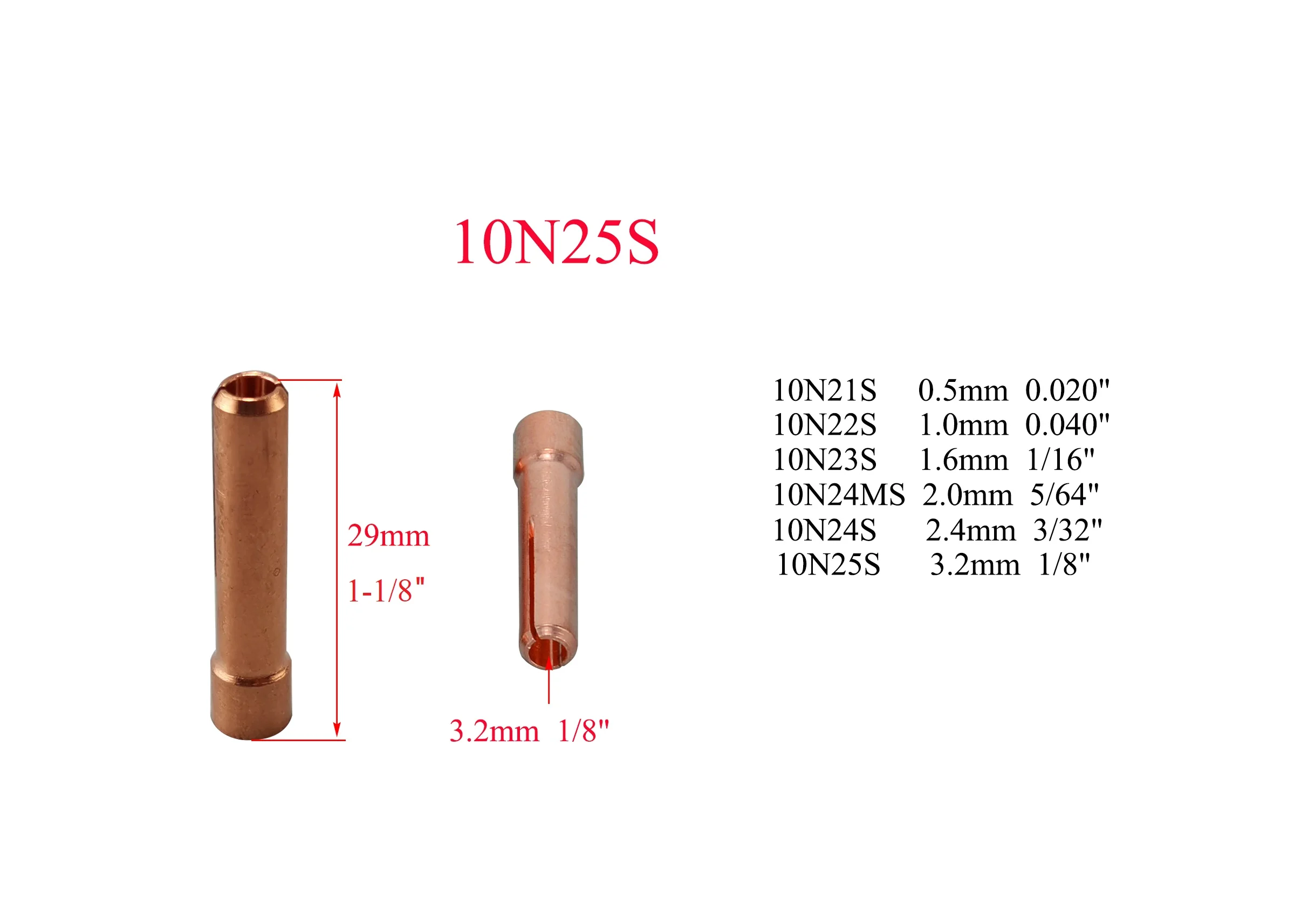 Сварочный фонарь TIG WP PTA DB SR 17 18 26 Ref No:10N25SШтубби Колле 1/8 "3,2 ммКоличество: 5 шт.