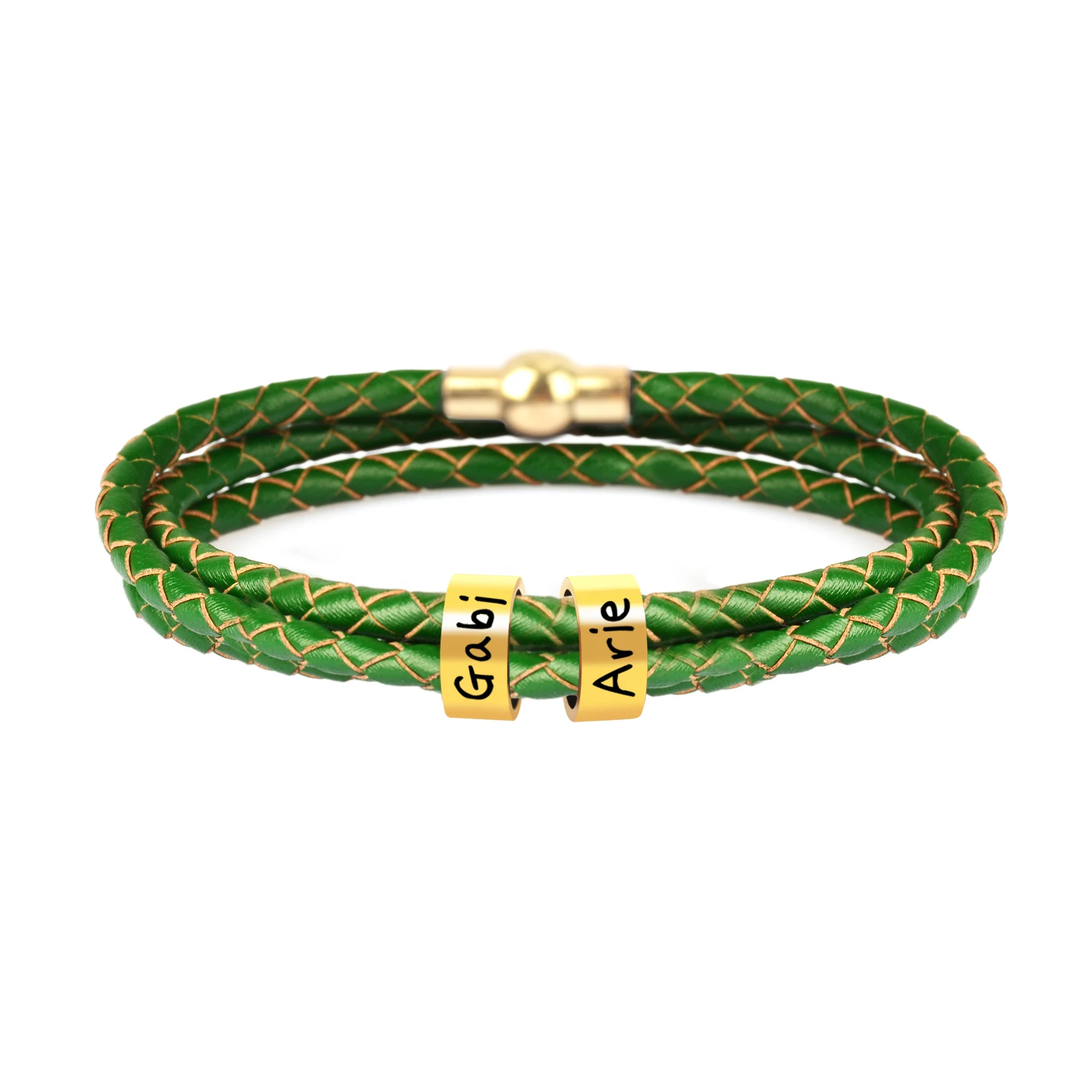 Индивидуальные ювелирные изделия для женщин и мужчин, браслеты из нержавеющей стали, плетеная веревка из натуральной кожи на заказ с бусинами 1-9 наименований, подарок