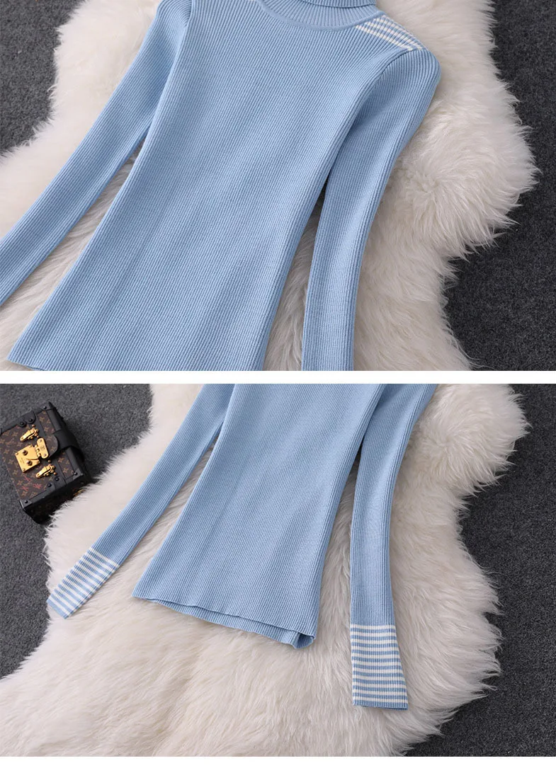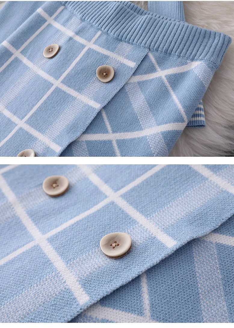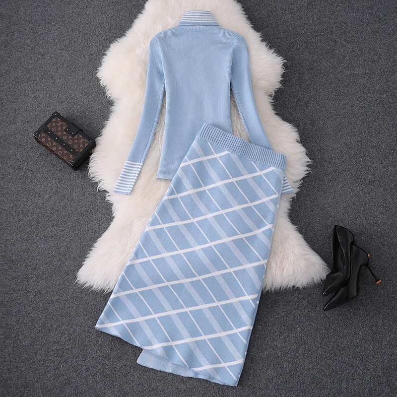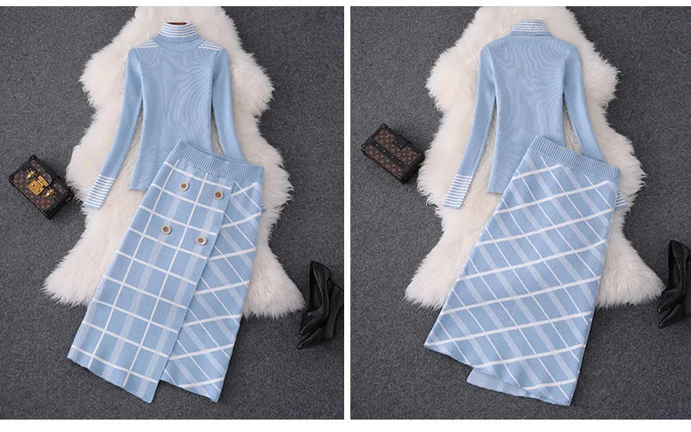 Женский комплект из Свитера и юбки, элегантный трикотажный топ с высоким воротом и юбка в клетку, комплект из 2 предметов, модель TZ157, Осень-зима 2021