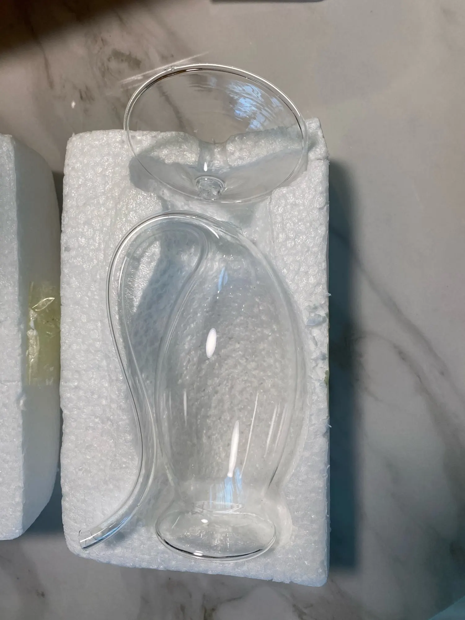 красивый стакан, но очень тонкий и хрупкий, разбился в первый же день. это случилось без особых усилий. просто поставили на стол налитым полным соком. и ножка сразу отвалилась. не рекомендую. потраченные деньги в пустую.