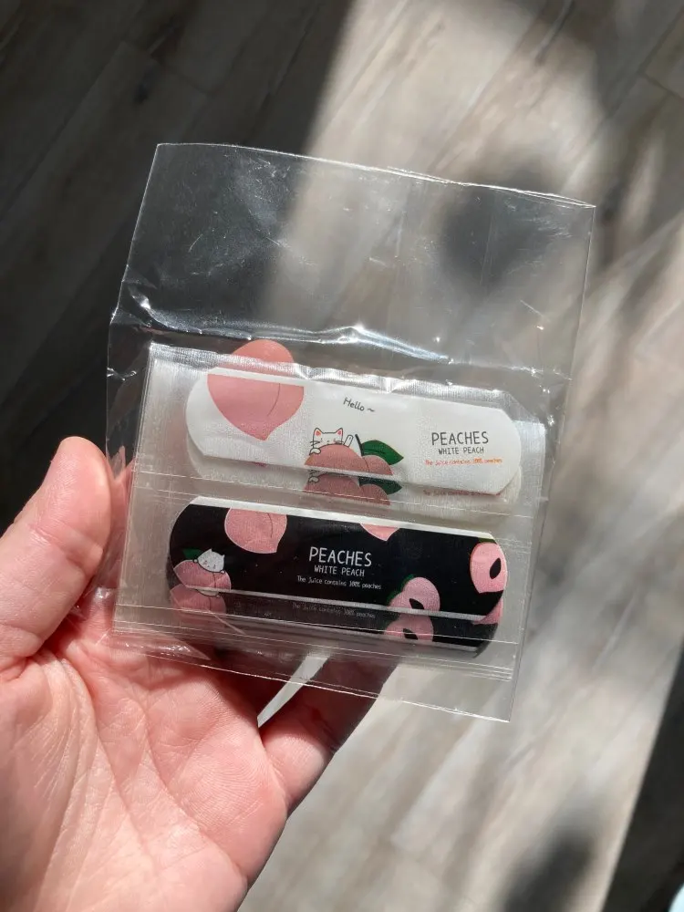 The actual bandaids themselves were really cute, though unfortunately the package took really long to get here and the packaging was a bit beat up, I ordered them back in December and I just got them. Idk what happened with shipping but I’m glad I have them now-