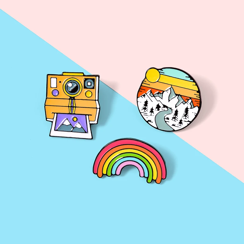 Креативная брошь в стиле ретро с изображением радуги заката гор Полароид камеры мультяшная булавка фиксированная одежда кулон аксессуары для сумки значки