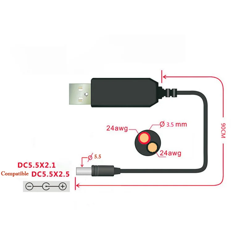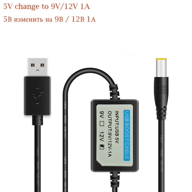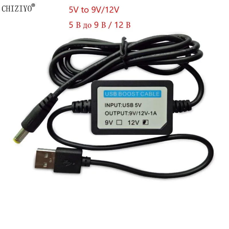 USB-кабель с повышением мощности 1 А, 5 В до 9 В12 В, Повышающий Модуль питания, преобразователь, адаптер, длина линии 1 м, разъем 2,1x5,5 мм