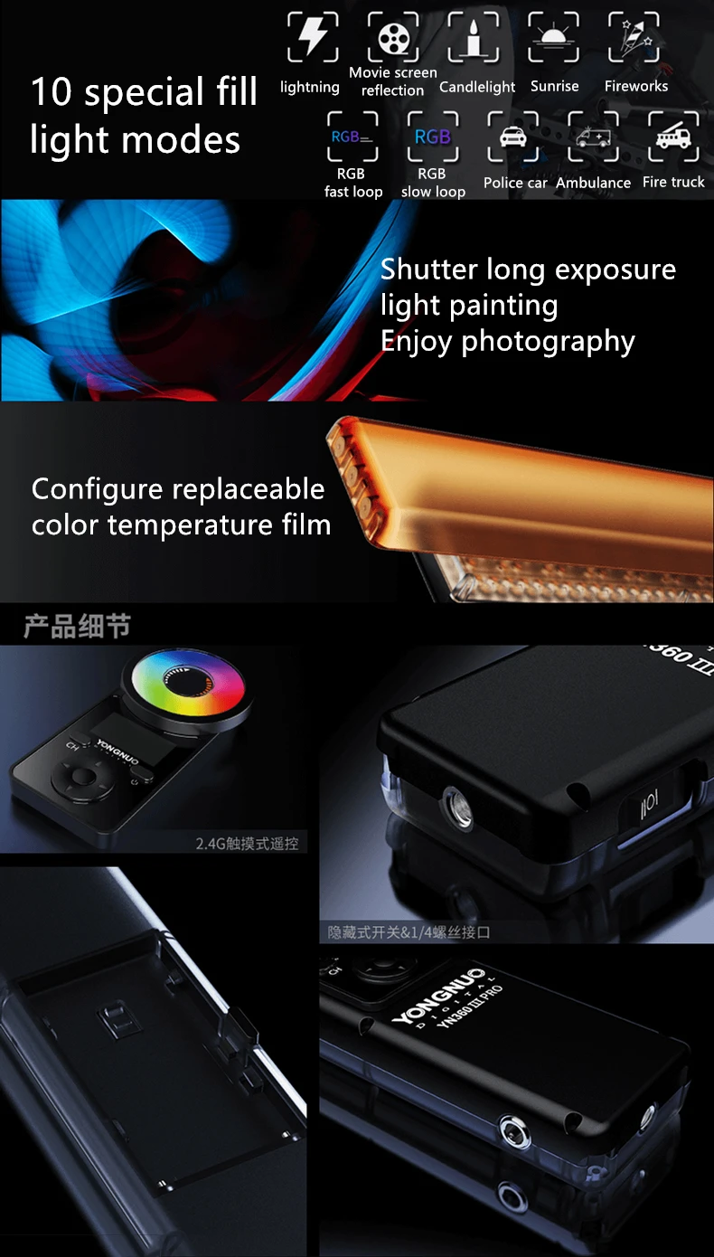 Светодиодсветильник лампа YONGNUO YN360IIIPRO, лампа для съемки видео и нанесения макияжа, с сенсорной регулировкой, с пультом ДУ, RGB-лампа 3200-5600K