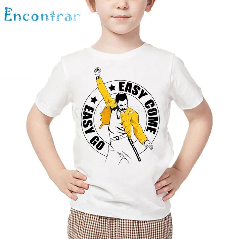 Детская футболка с принтом рок-группы Queen Freddie Mercury, детские летние белые топы, модная повседневная футболка для мальчиков и девочек