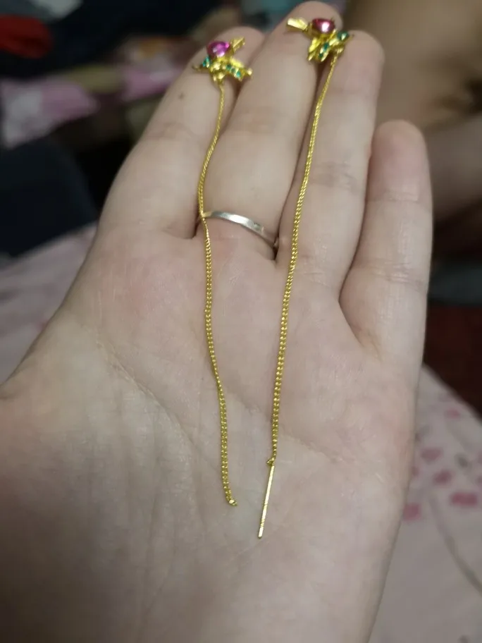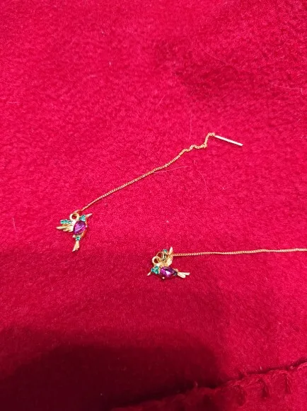 Сережки отличаются цветом,чем продавца.Металл желтее,зеленые камни более зеленее.Камни то ладно,но цвет металла все портит и из-за этого выглядят дешево.Задумка интересная с птичками калибри.Но не стоят этих денег.Покупала 98.40р.