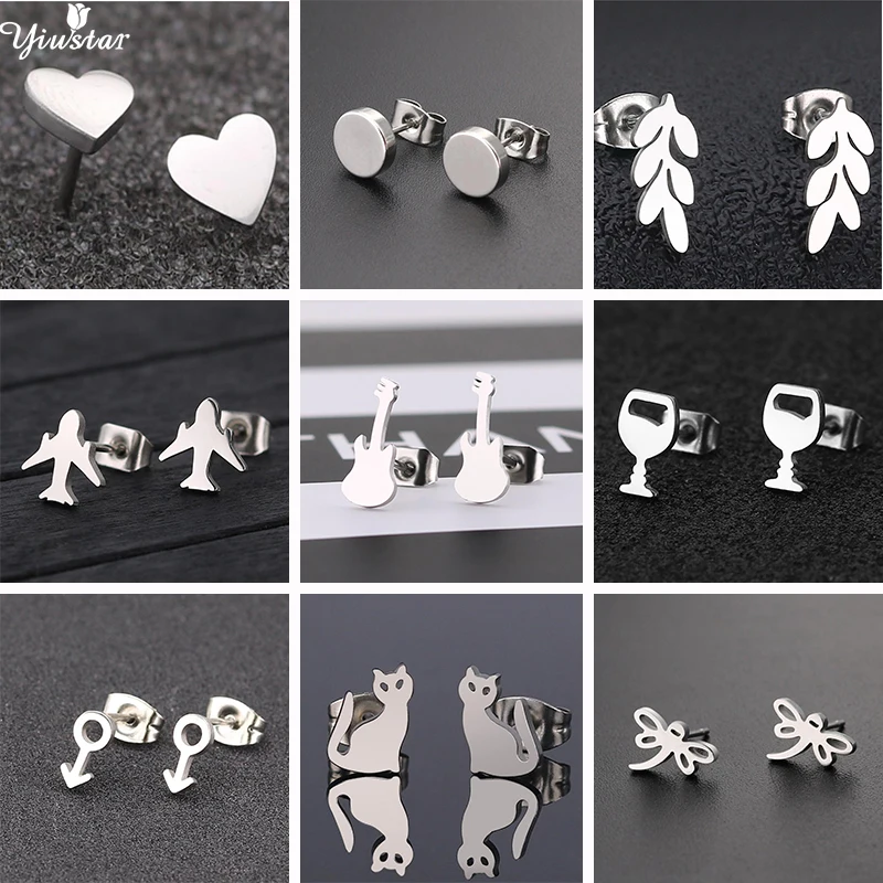 В стиле панк, бохо из нержавеющей стали, серьги-гвоздики для женщин милые ювелирные изделия: модные серьги в форме милый лист в форме сердца геометрической формы круглые серьги в винтажном стиле