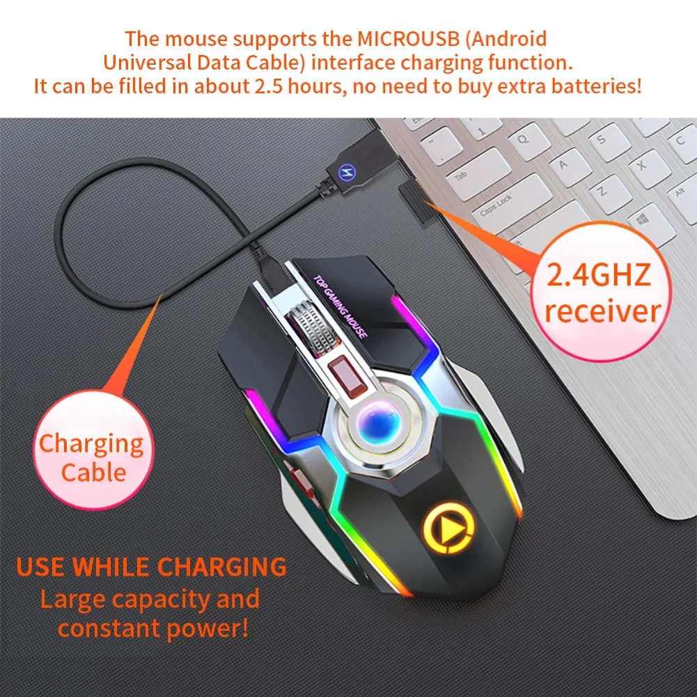 Мышь игровая аккумуляторная, 7 кнопок, 1600DPI, с RGB-подсветкой