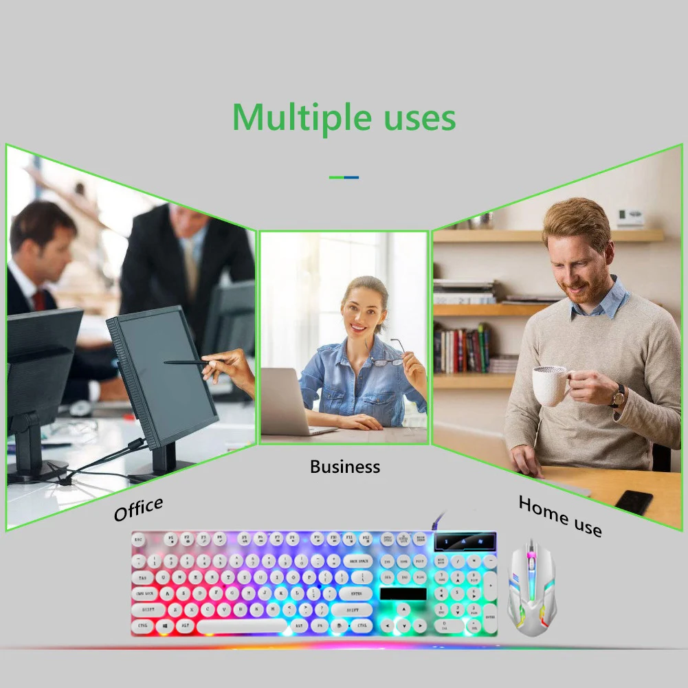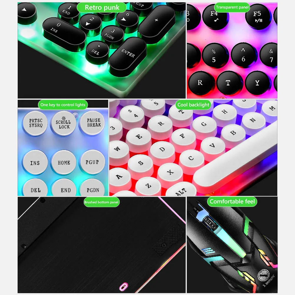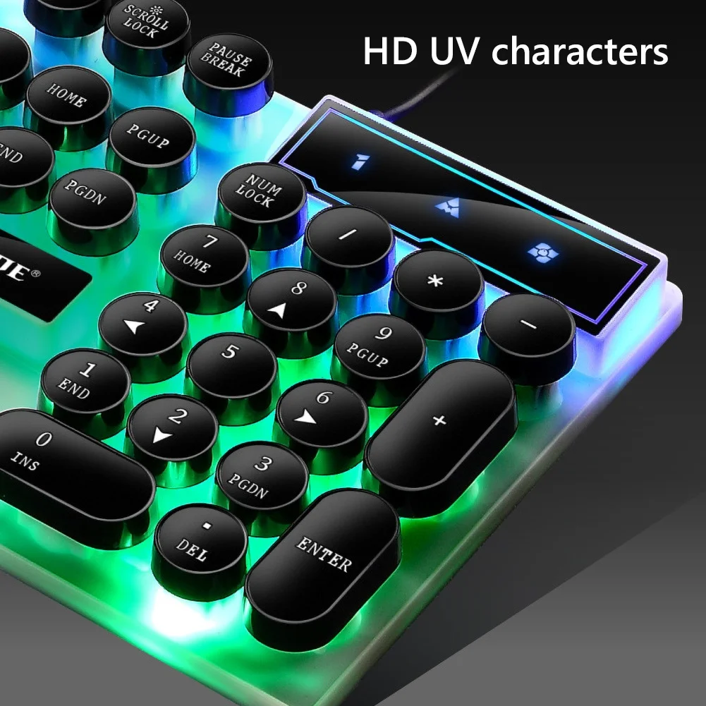 Новая игровая клавиатура со светодиодной подсветкой, проводная USB клавиатура с 104 клавишами, чернаябелая клавиатура и оптическая мышь, комбинированная для Windows, android, IOS, для геймеров