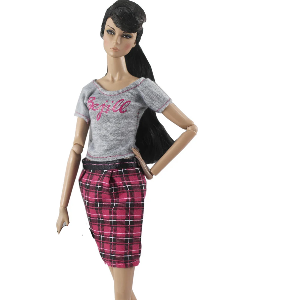NK 1x платье для куклы, юбка, модная одежда, серая рубашка + мини-юбка для куклы Барби, аксессуары, детские игрушки, подарок для девочек 4X