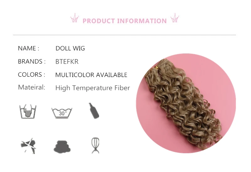 Парик для куклы, 20*100 см, натуральный цвет, вьющиеся волосы для к...