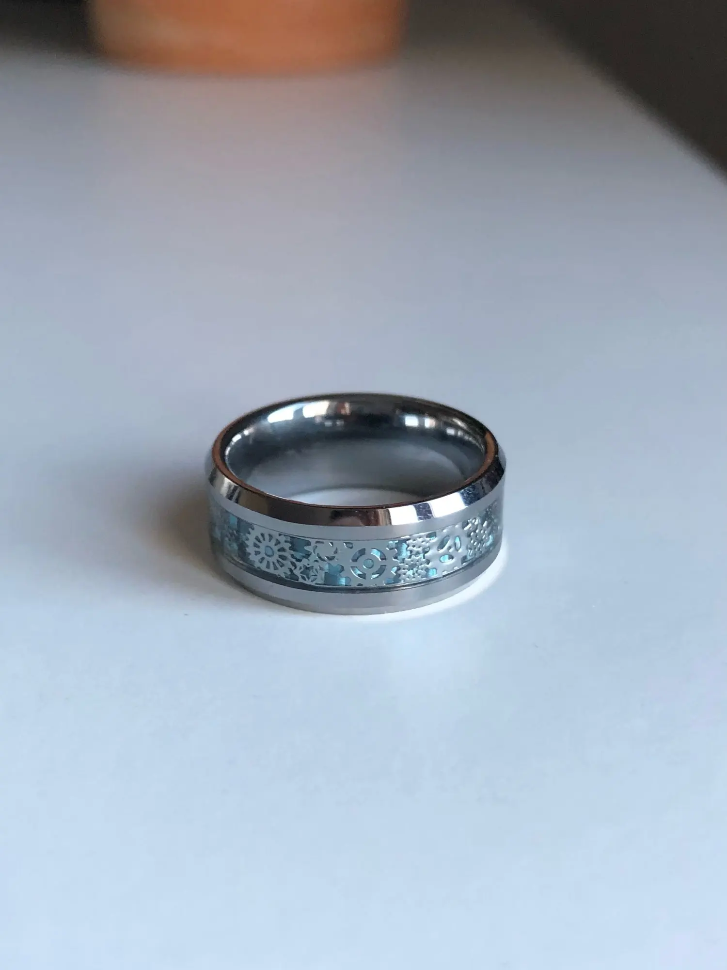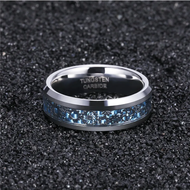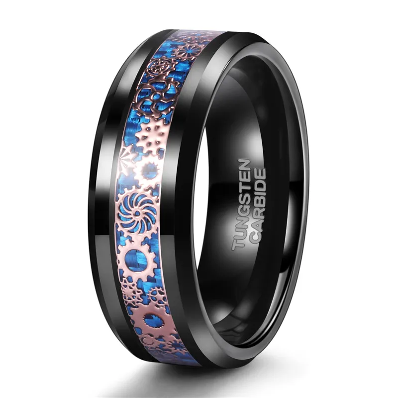 Мужские вольфрамовые кольца So men, роскошные обручальные кольца серебристого цвета с инкрустацией синего цвета и шестеренками, модные дизайнерские кольца 8 мм, ювелирные изделия для вечеринок