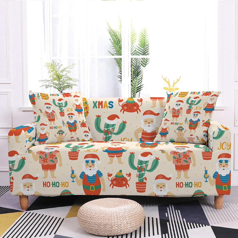 Чехлы на диван с надписью "Merry Christmas", эластичный чехол на диван для гостиной, чехол на диван с Санта-Клаусомоленем, Рождественский Декор