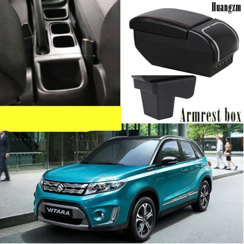 Для Suzuki vitara подлокотник коробка двухслойный центральный магазин содержание коробка для хранения с пепельницей подстаканник аксессуары