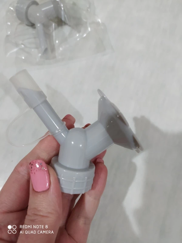 Насадку получил, спасибо! Насадка выдержала пересылку! Маленькая, хрупкая, на целая! На фото видно (наверное плох) насадка исправна! Со своими функциями справляется! Чтобы под напором лить из лейки, надо калпочком закрыть носик. Товар и продавца советую!