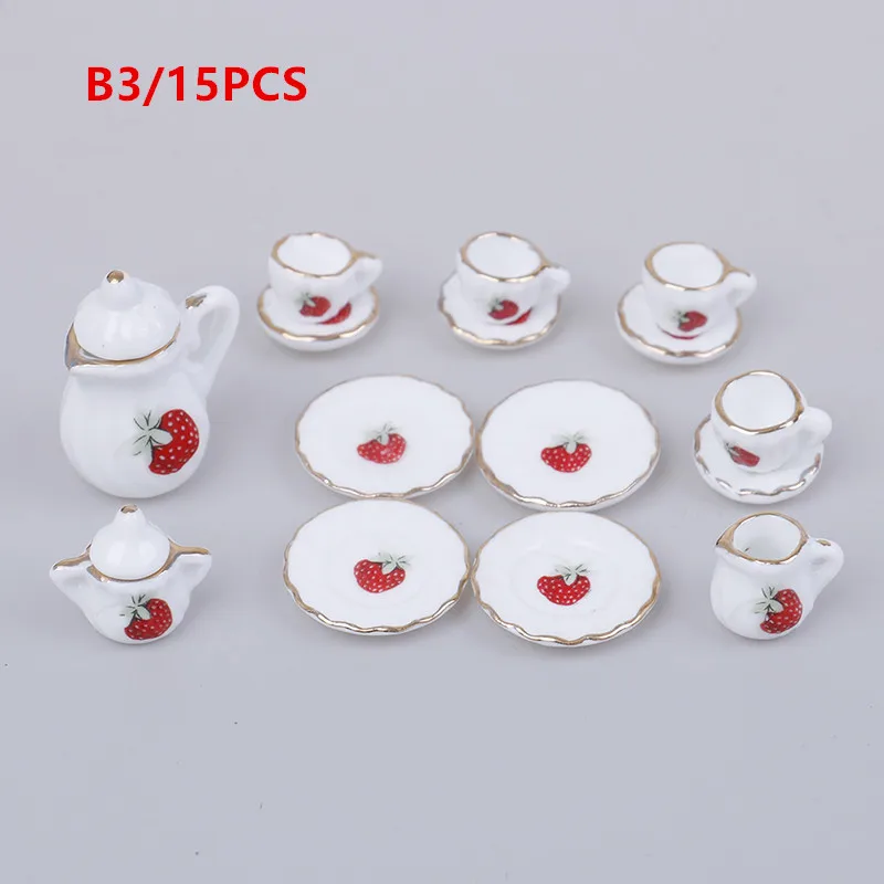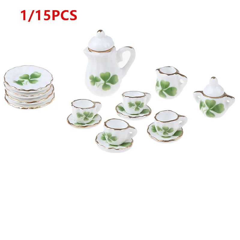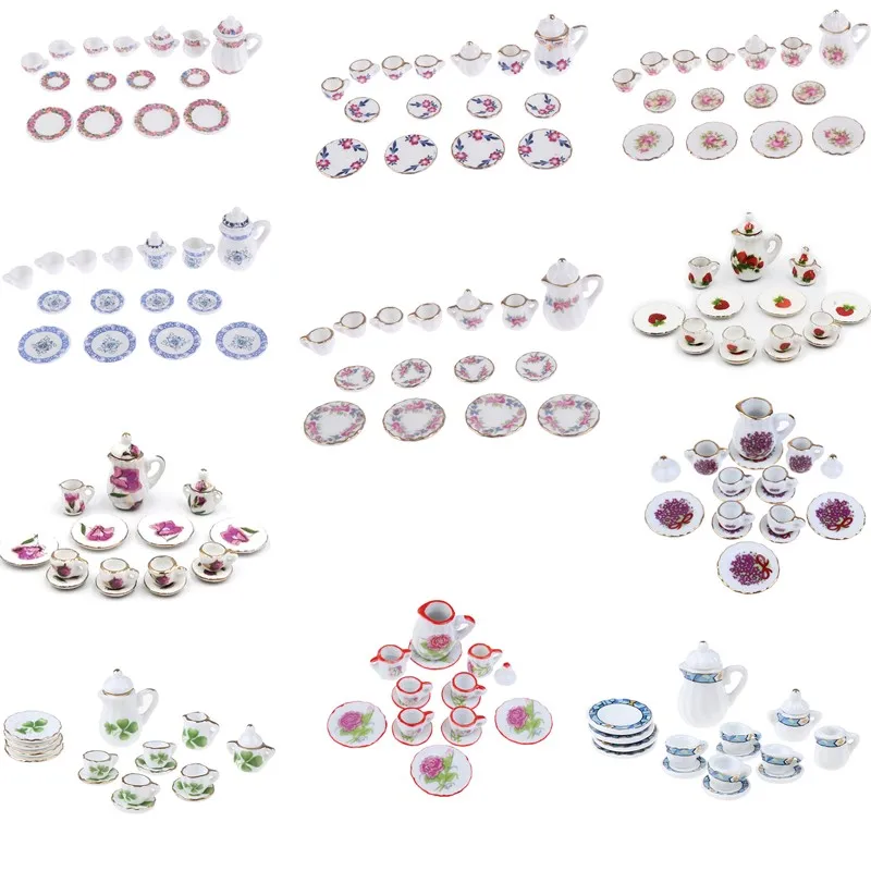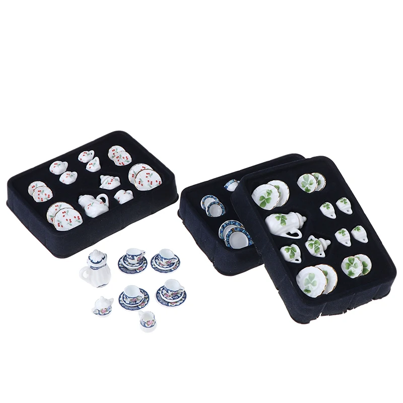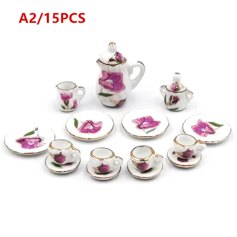 Миниатюрный фарфоровый чайный набор, 15 шт., 1:12, китайский цветок, посуда, кухонный кукольный домик, мебель, игрушки для детей