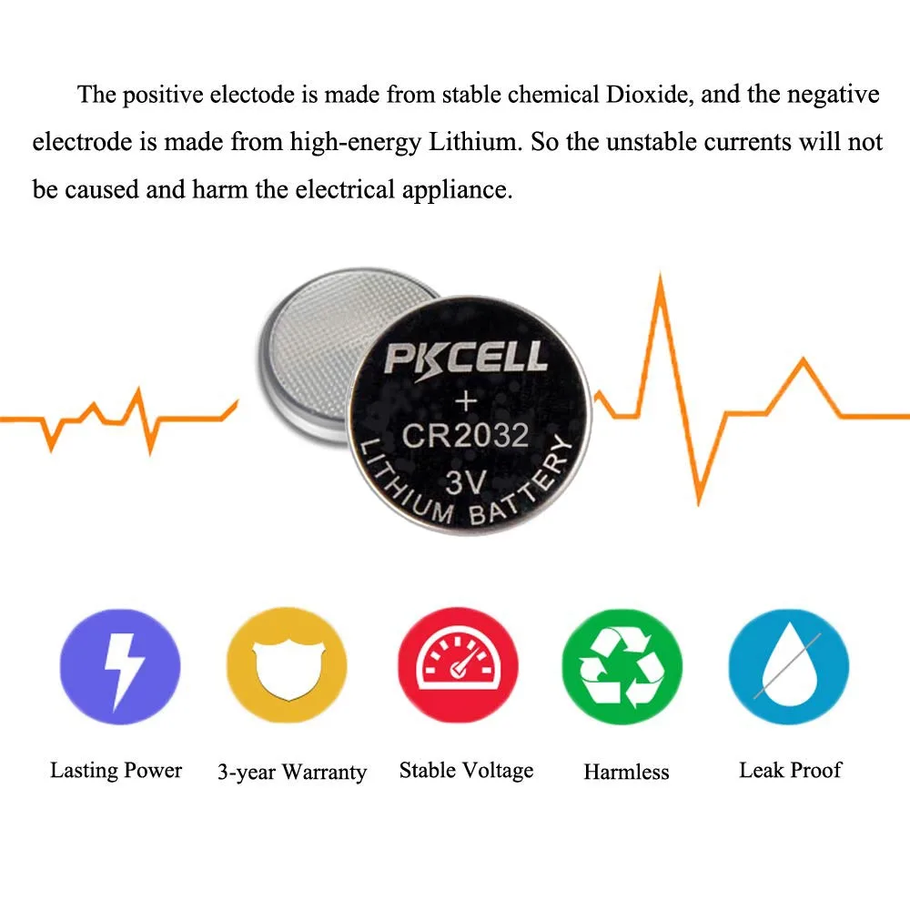 Аккумуляторные батарейки PKCELL CR2032 3 в, литиевая батарея для часов, пульта дистанционного управления, 40 шт.