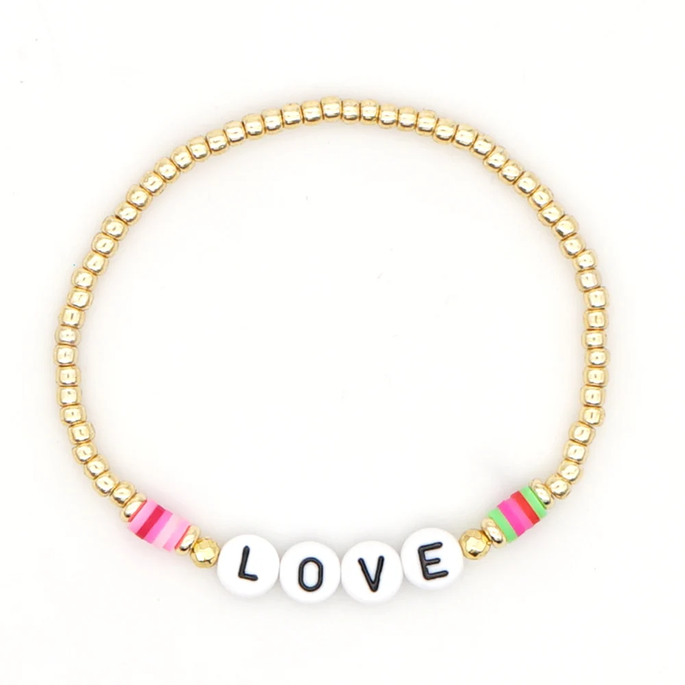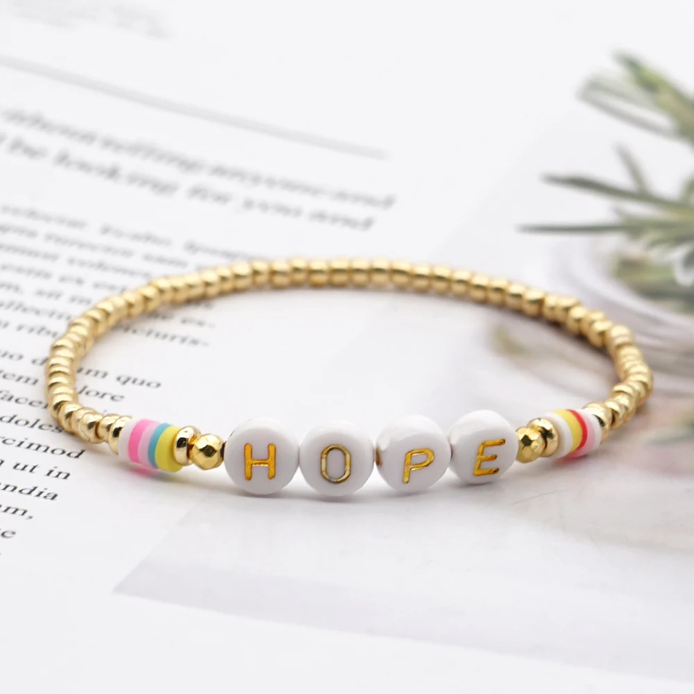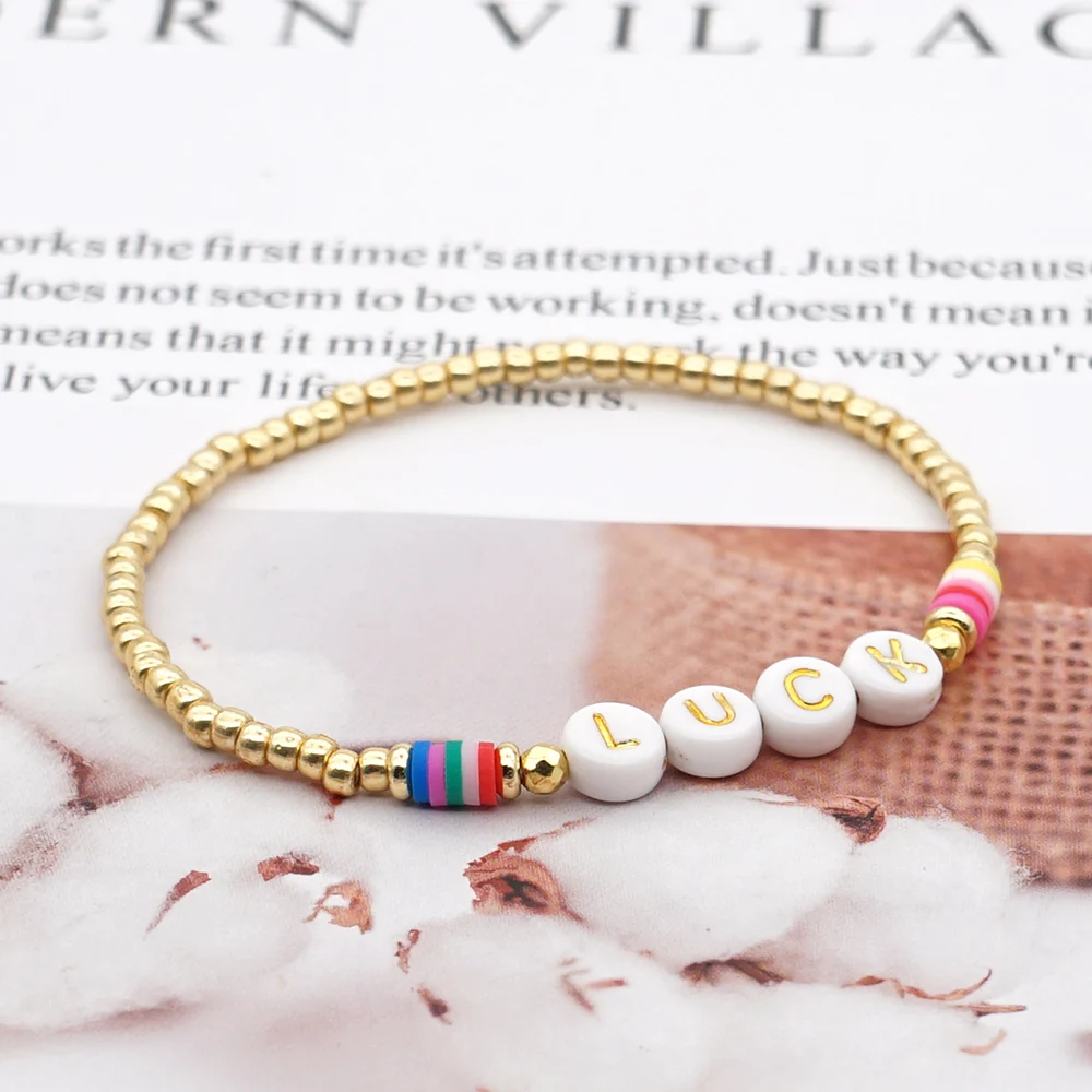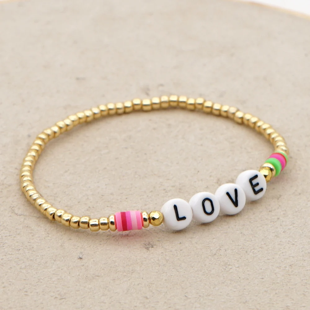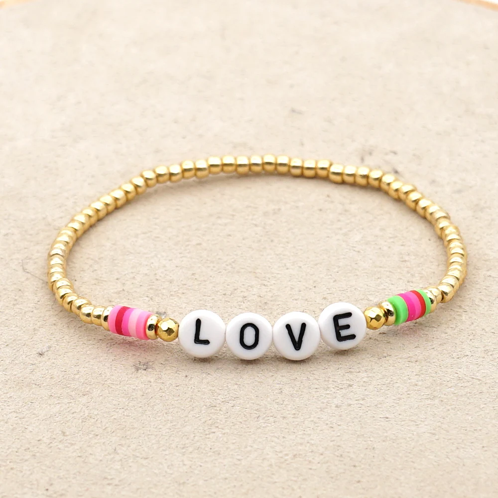 GO2BOHO LOVE Браслеты с буквами Heishi, виниловый браслет из бисера для женщин, модные ювелирные изделия, высокое качество, золотые бусины
