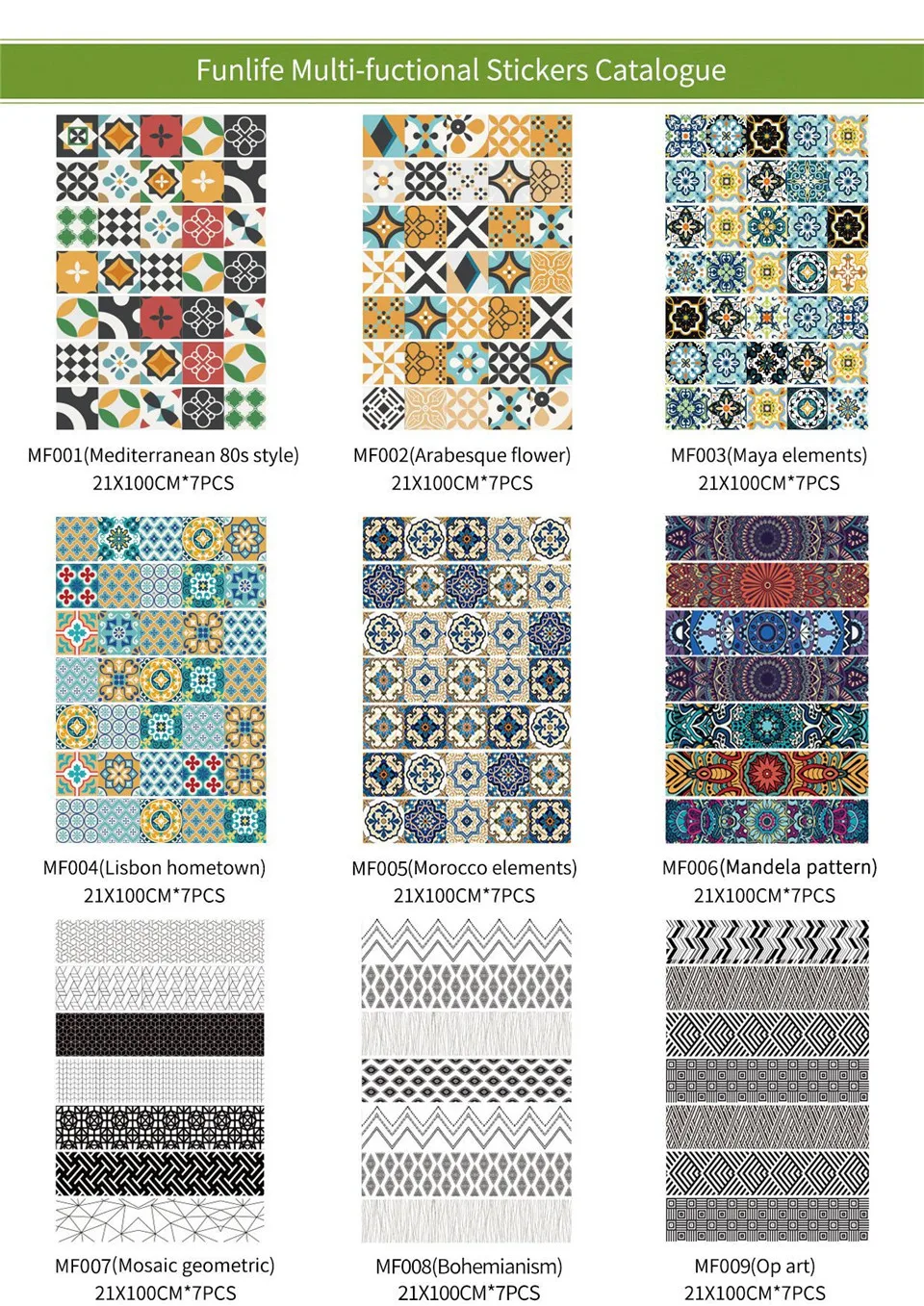 1. Материал: экологически чистый ПВХ 2. Размер: 21x100cmx7pcs(8.27x39.37inx7pcs) 3. Особенности: матовая отделка ПВХ, лома-доказательство разрыва водонепроницаемый, пилинг и палка 4. О креплении: применяется на гладкой поверхности 5. Функции: многофункциональные наклейки (кухонные и ванные плитки, двери, лестницы, шкафы, холодильники, столы, перегородки, декорационные картины, MAC, тележка и т. д.) Примечание: скидка 5% при покупке более трех комплектов