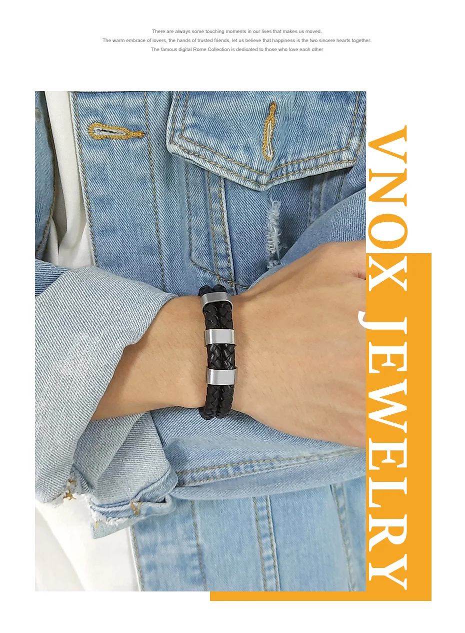 2-6 шт., мужские плетеные браслеты из натуральной кожи с застежкой