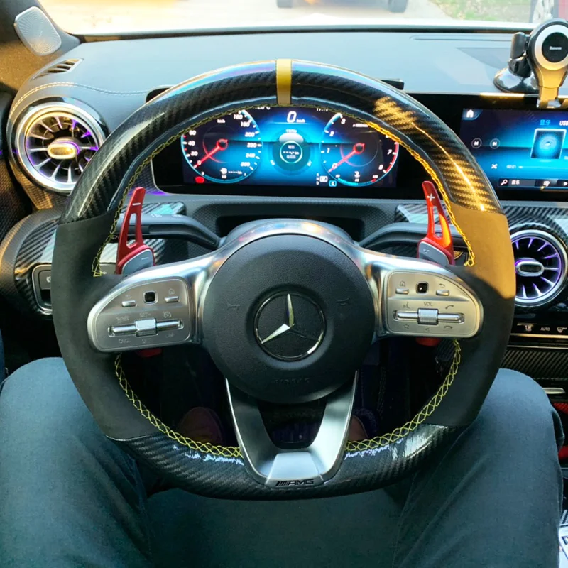 5D чехол из углеродного волокна и замши для рулевого колеса, ручного шитья, подходит дляMercedes-Benz A-Class W177 2018-2019 / C-Class W205 2018-2019 / E-Class W213 2018-2019 / S-Class W222 2018-2019 / G-Class W463 2018-2019