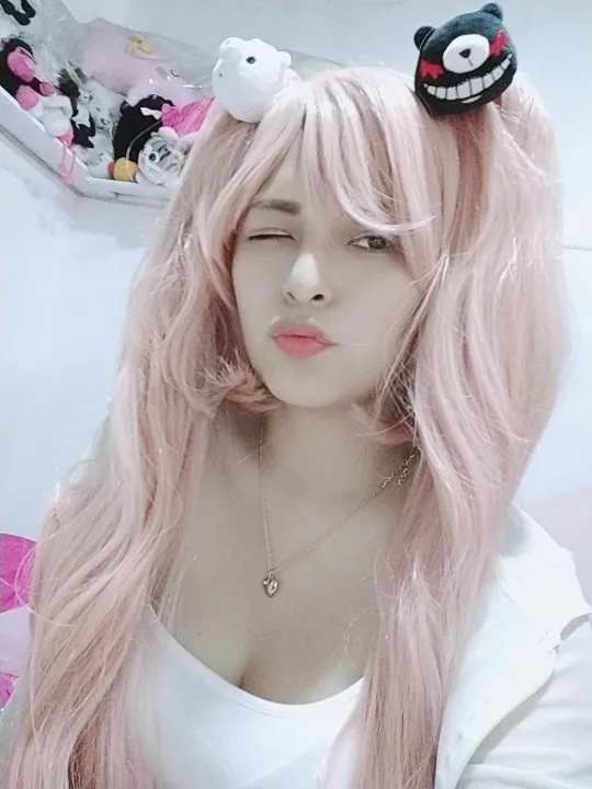 Женский парик для косплея аниме Danganronpa: Trigger Happy Havoc, джунко эношима, хвост для ролевых игр, заколки для волос с медведями, джунко эношима