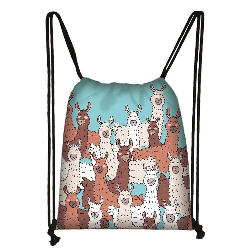 Забавная сумка на шнурке из альпаки, рюкзак с мягкой спинкой из ламы, женские дорожные сумки, Холщовая Сумка для хранения для мальчиков и девочек, детская сумка для книг, держатель для обуви
