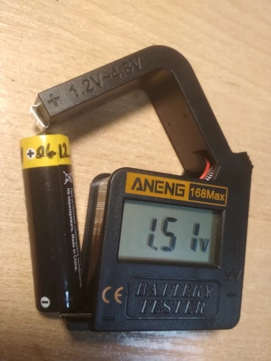 Почти полтора месяца до РБ. Приборчик маленький и живёт теперь в боксе с батарейками для быстрого контроля. Измеряет напряжение, как и положено, под небольшой нагрузкой, что позволяет более точно оценить состояние элемента питания. Сравнение измеряемого напряжения с показаниями точного прибора показало полное соответствие. Рекомендую.