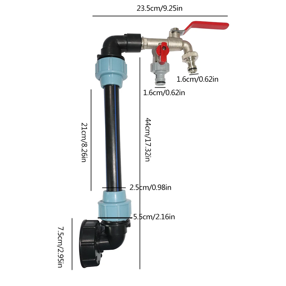 Адаптер для крана резервуара IBC, полиэтиленовый резервуар IBC, фотоэлемент с 1 трубкой и 2 изогнутыми коннекторами