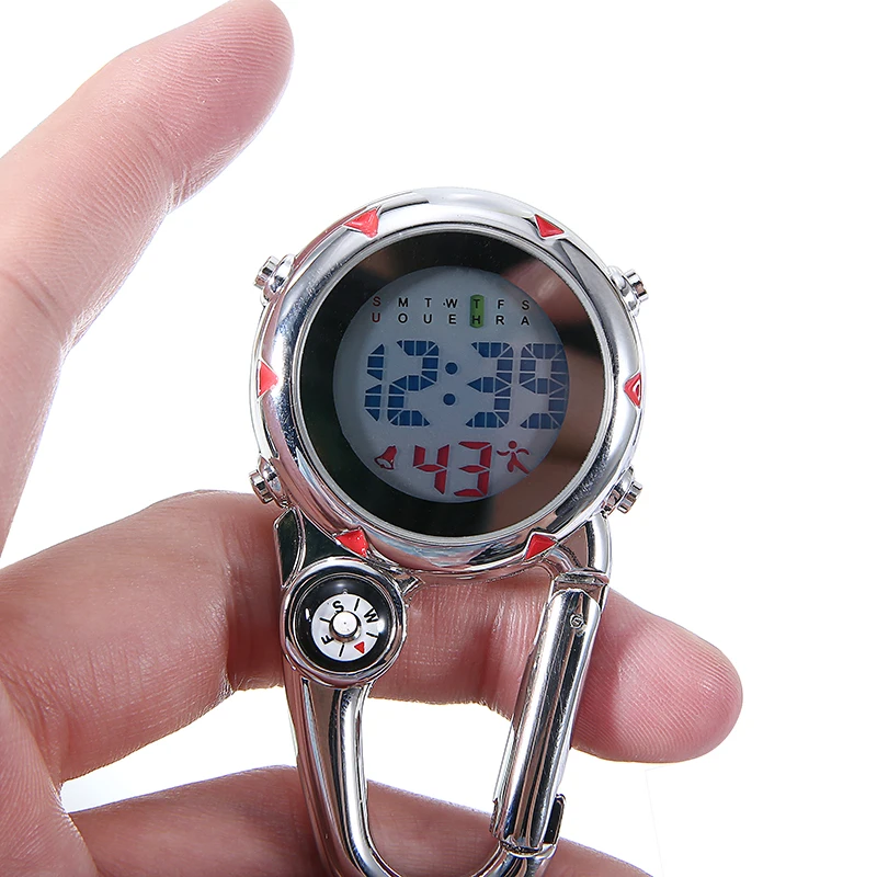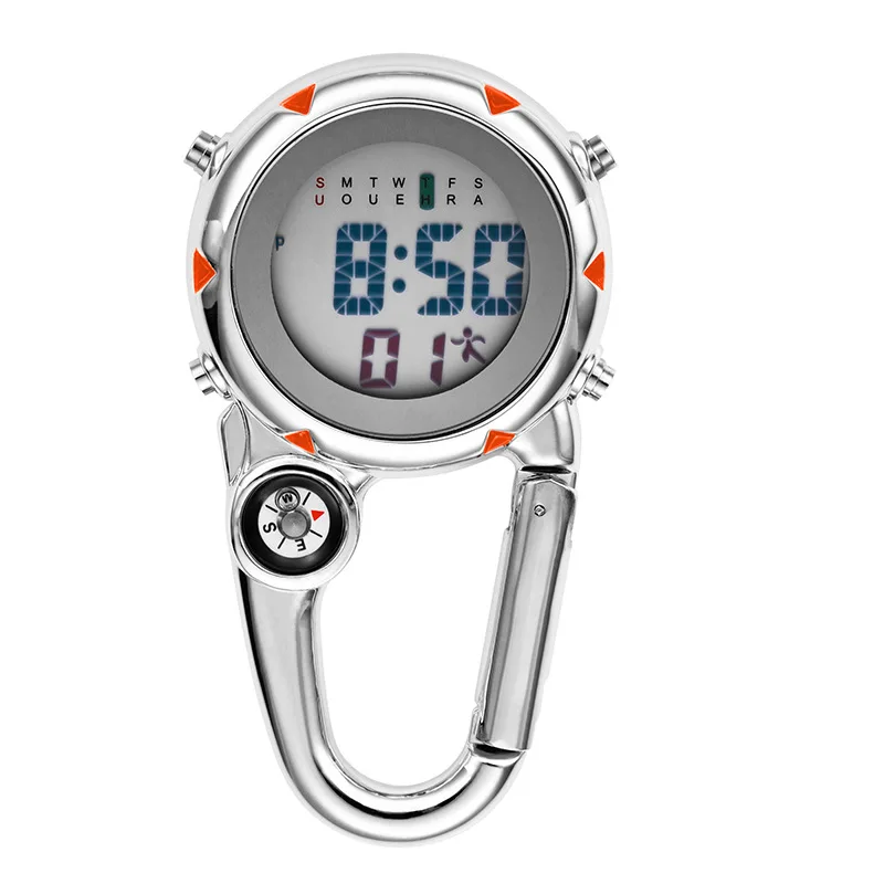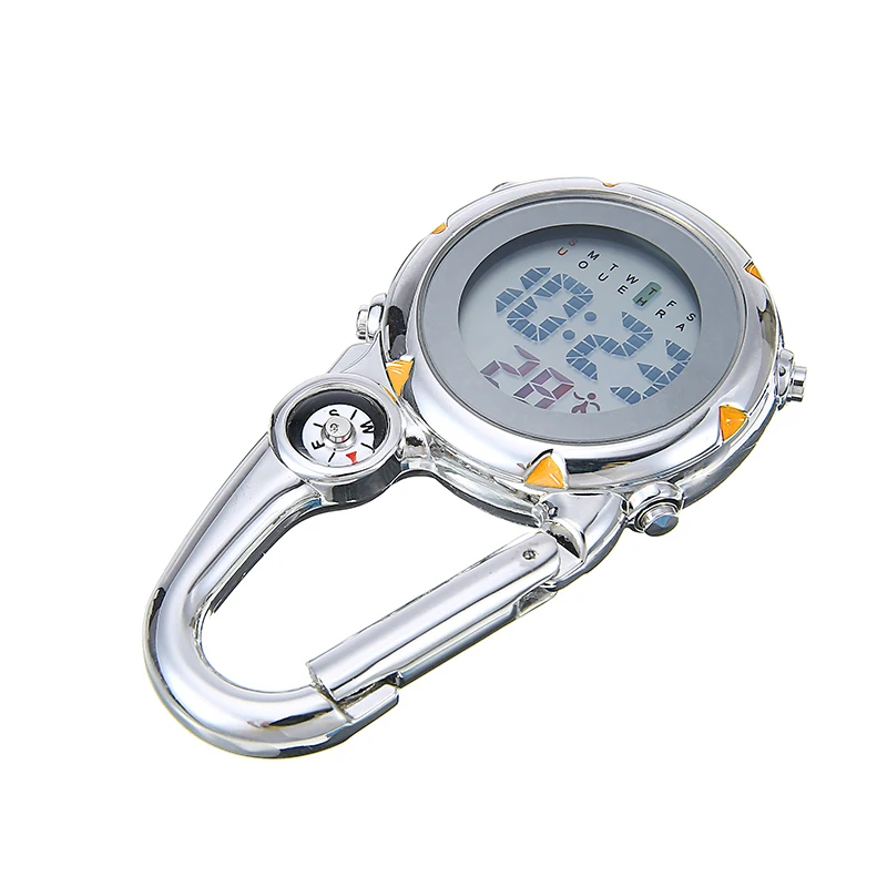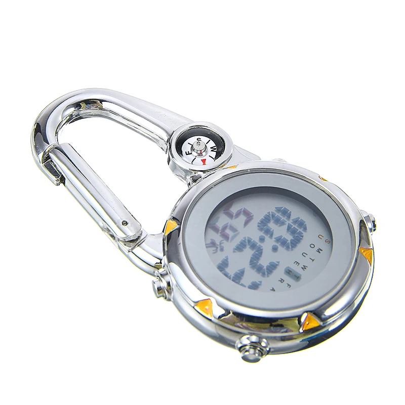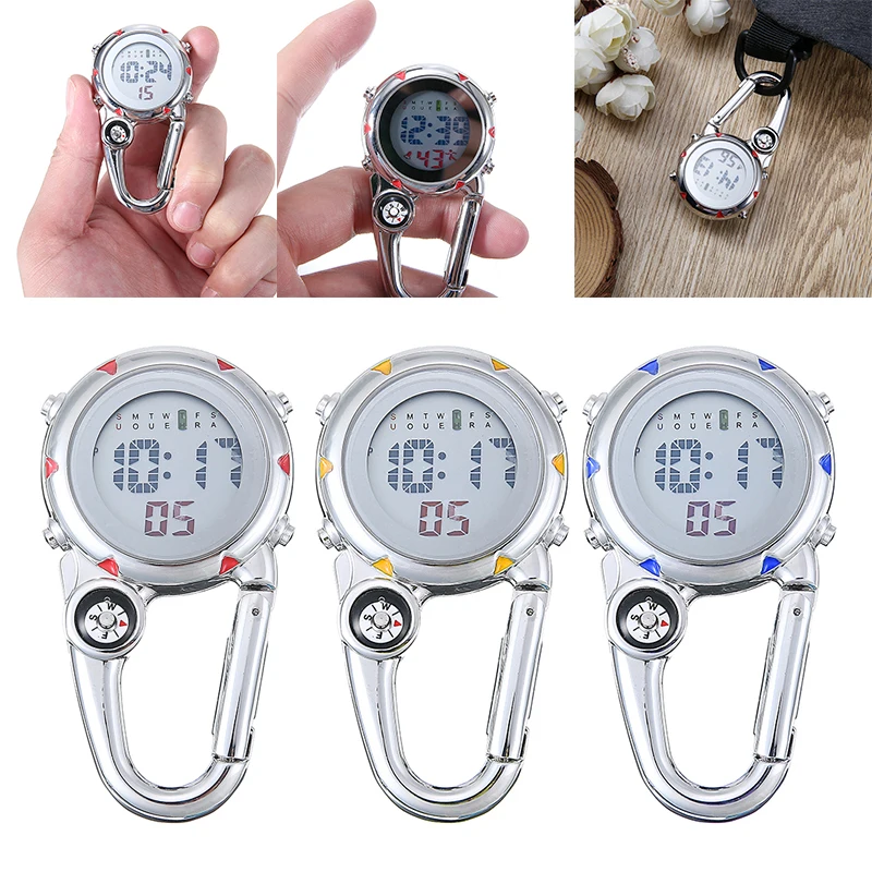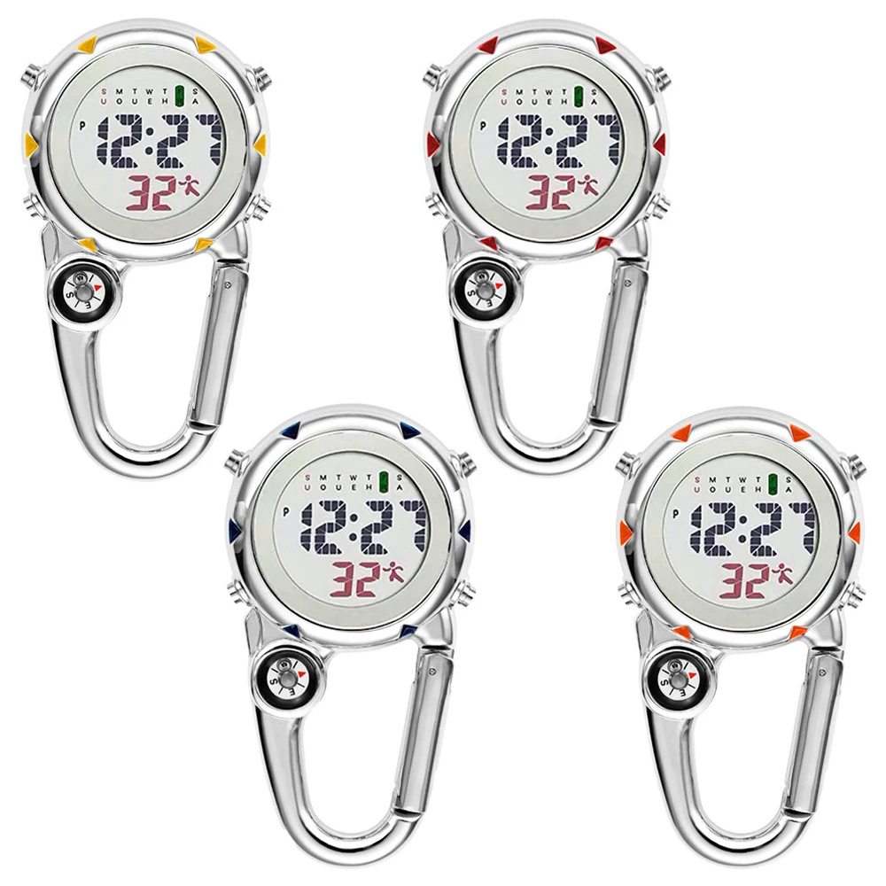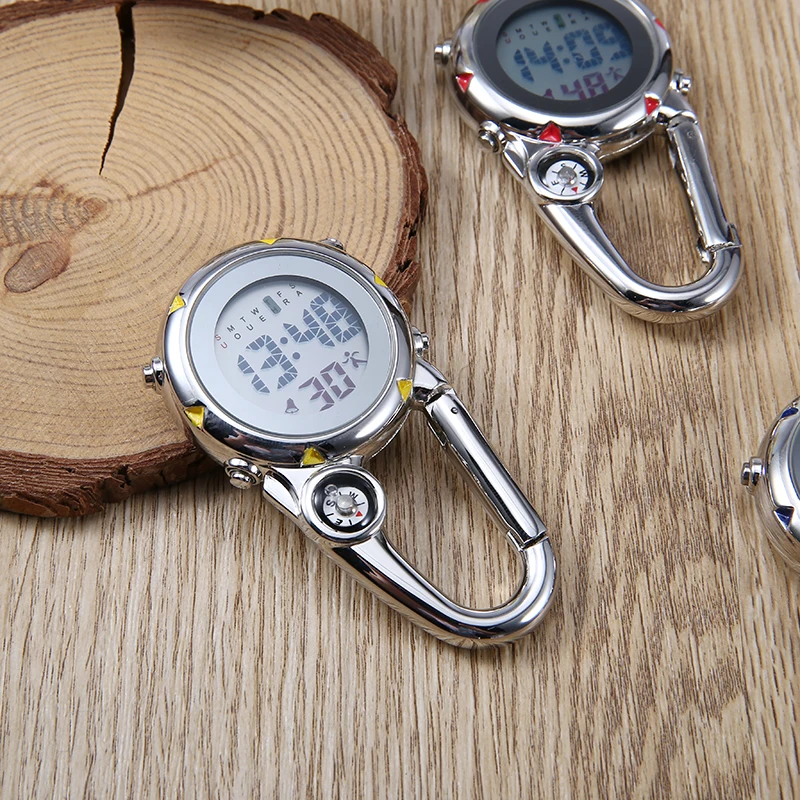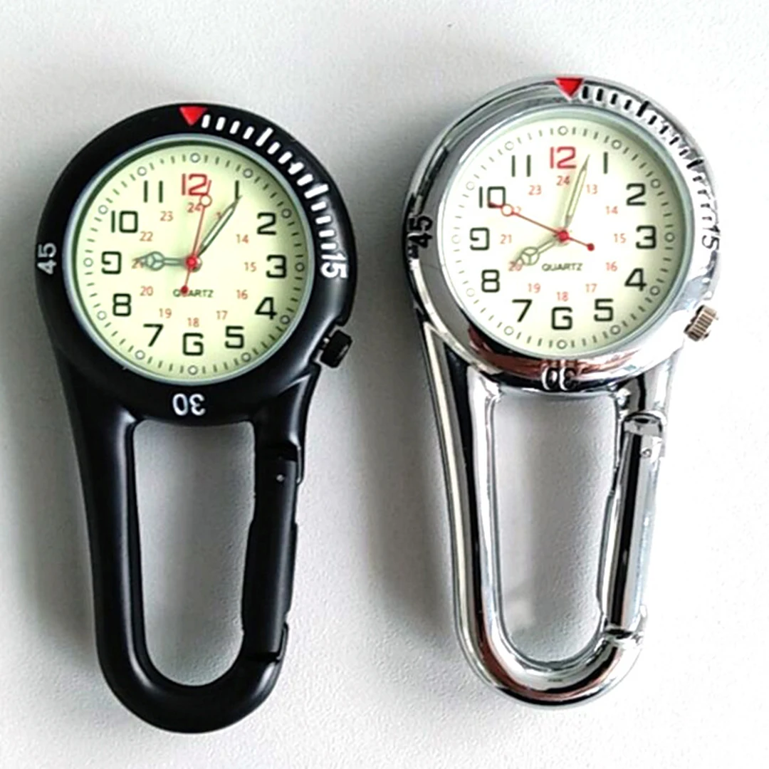 Винтажные цифровые часы с зажимом на карабине для любителей пеших прогулок, строительных работников, медсестер, светящиеся стрелки