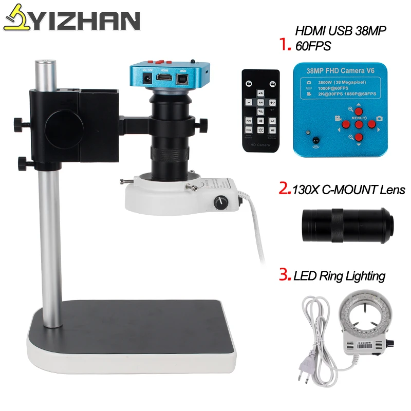 YIZHAN 38MP HDMI цифровой микроскоп для электроники промышленный цифровой видео микроскоп камера пайка 130X C крепление светильник объектива