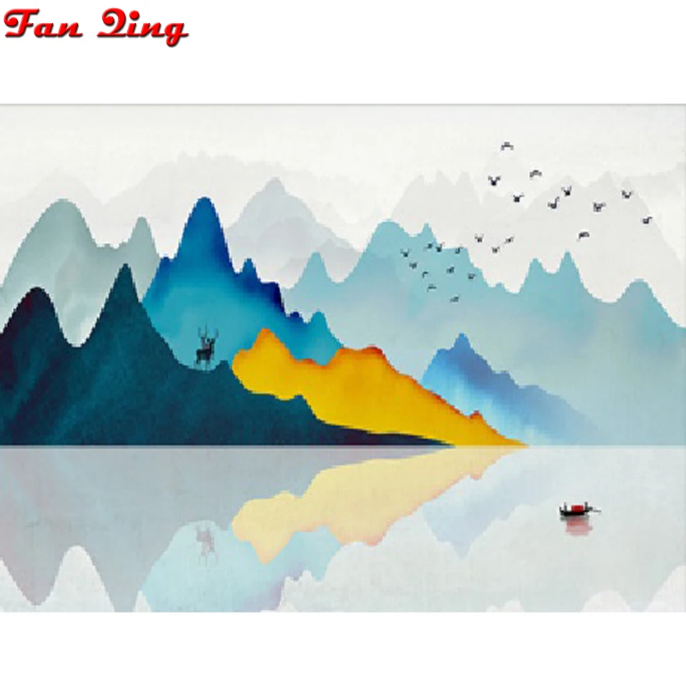 Абстрактный пейзаж Скандинавская Алмазная вышивка ручной работы полностью дрель квадратный 5d Diy алмазная живопись золотые Горные Птицы
