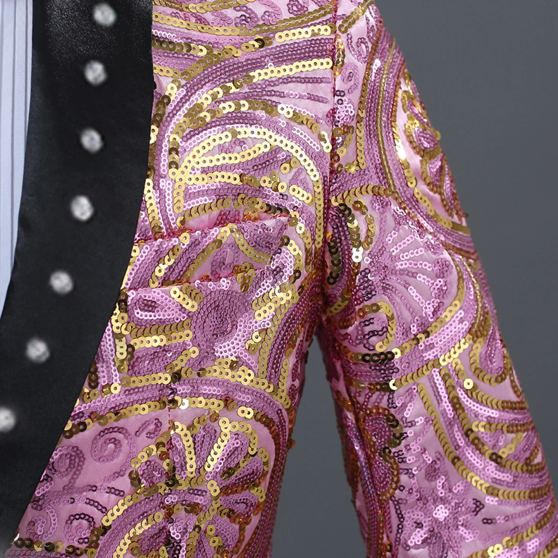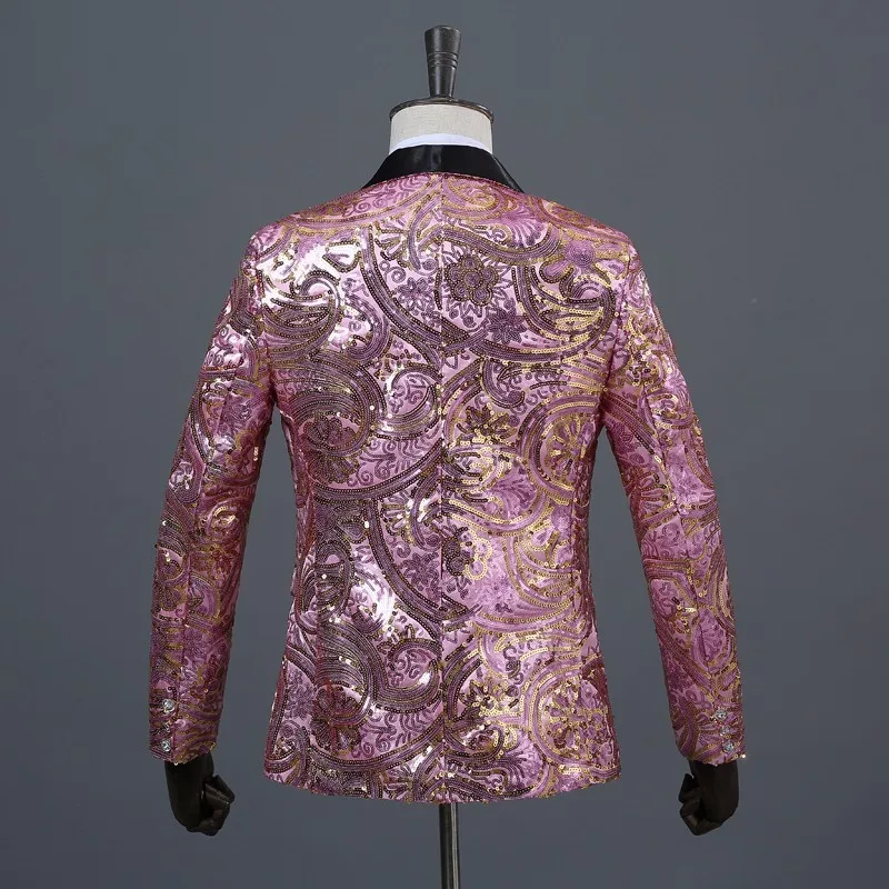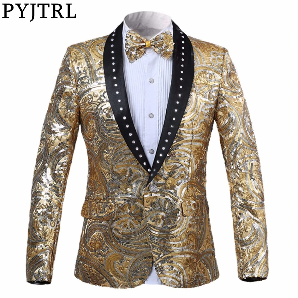Роскошная мужская шаль PYJTRL с кристаллами, отворот, розовый золотой цветок, блестки, приталенный костюм, куртка, дизайн DJ