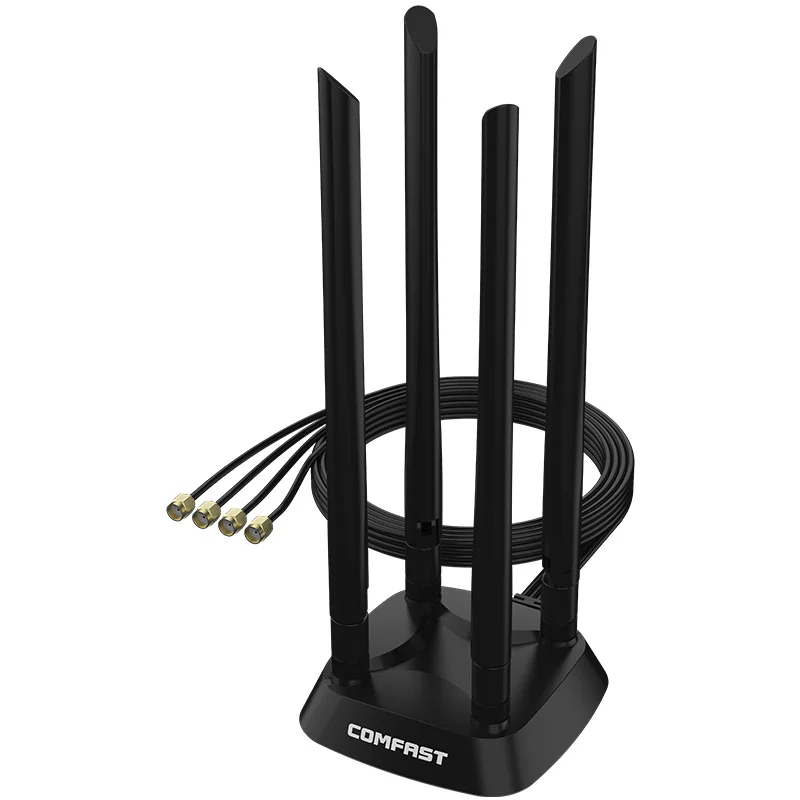 Улучшите скорость работы сетевой карты. При подключении сетевой карты эффективно улучшает проблему медленного сетевого буфера, замораживания игр и задержки сериаута. Двухдиапазонная передача и получение более стабильны, с 6dbi высоким коэффициентом усиления Двухдиапазонная всенаправленная антенна, диапазон покрытия сигнала шире, и передача более стабильна. 4 антенны с высоким коэффициентом усиления, хороший сигнал через стену 4 внешние всенаправленные антенны с высоким коэффициентом усиления, после точного тестирования, с разумной внутренней структурой и планировкой, Полностью улучшает производительность передачи, даже в различных сложных enviornments
