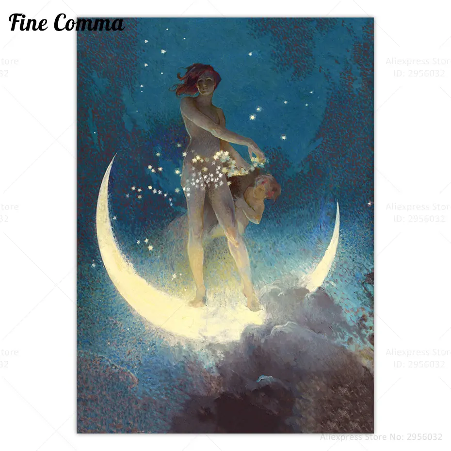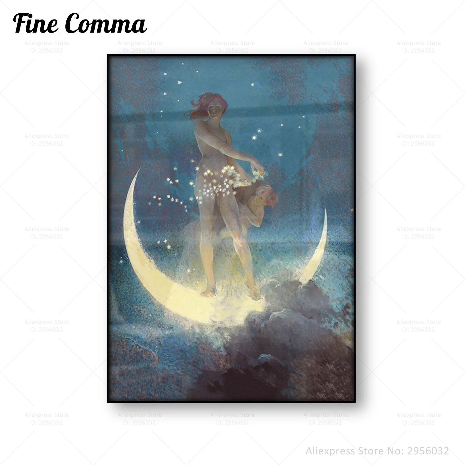 Луна Goodess настенная печать Небесный ВИНТАЖНЫЙ ПЛАКАТ Весенняя рассыпь звезды ночной полумесяц Печать на холсте декоративная живопись