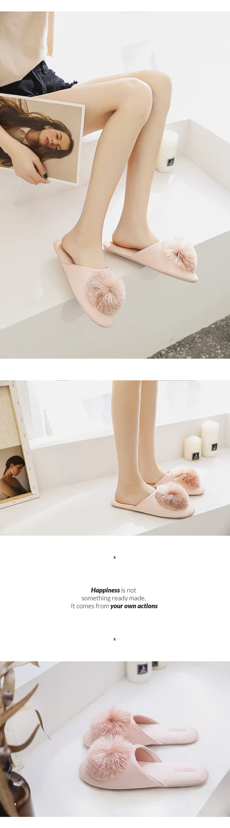 Женские тапочки; Сезон лето-осень; Домашние тапочки с кисточками и помпонами; Нескользящие удобные дышащие тапочки; Женская резиновая подошва