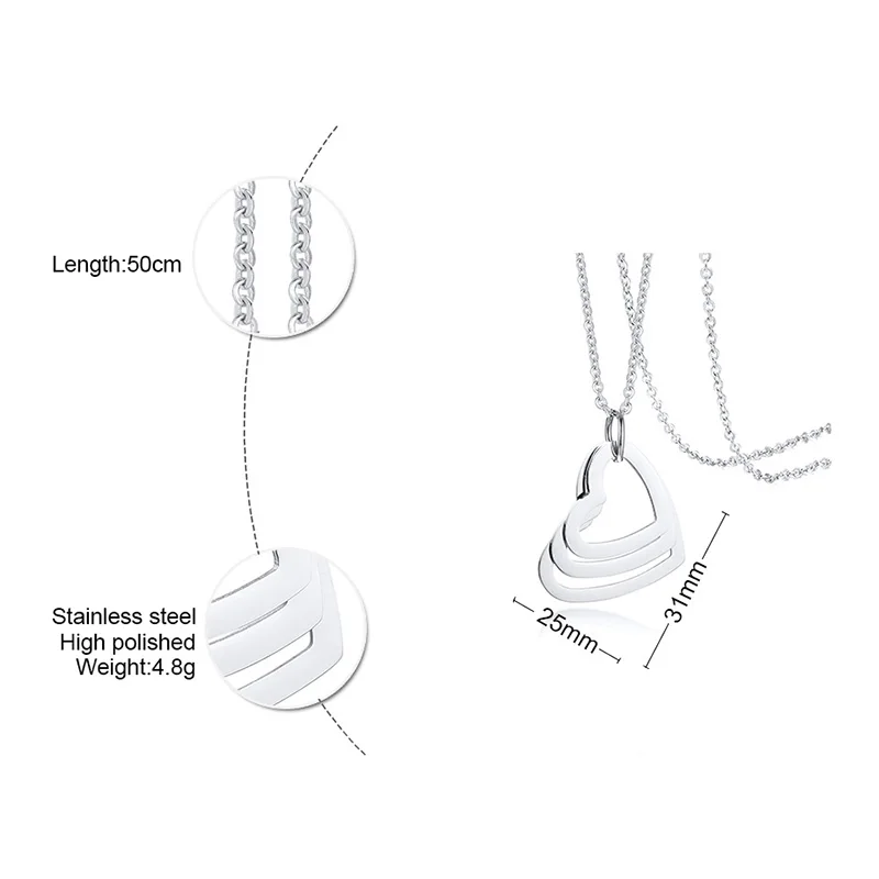 Ожерелье женское из нержавеющей стали, с гравировкой в виде сердца