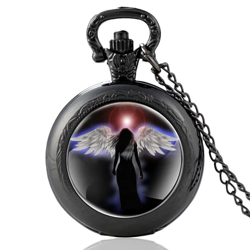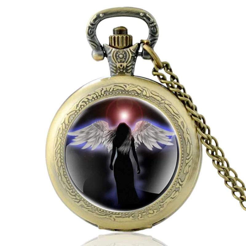 Классические уникальные часы Guardian Angel, дизайнерские серебряные винтажные кварцевые карманные часы для мужчин и женщин, стеклянный купол, подвеска, ожерелье, часы, подарки
