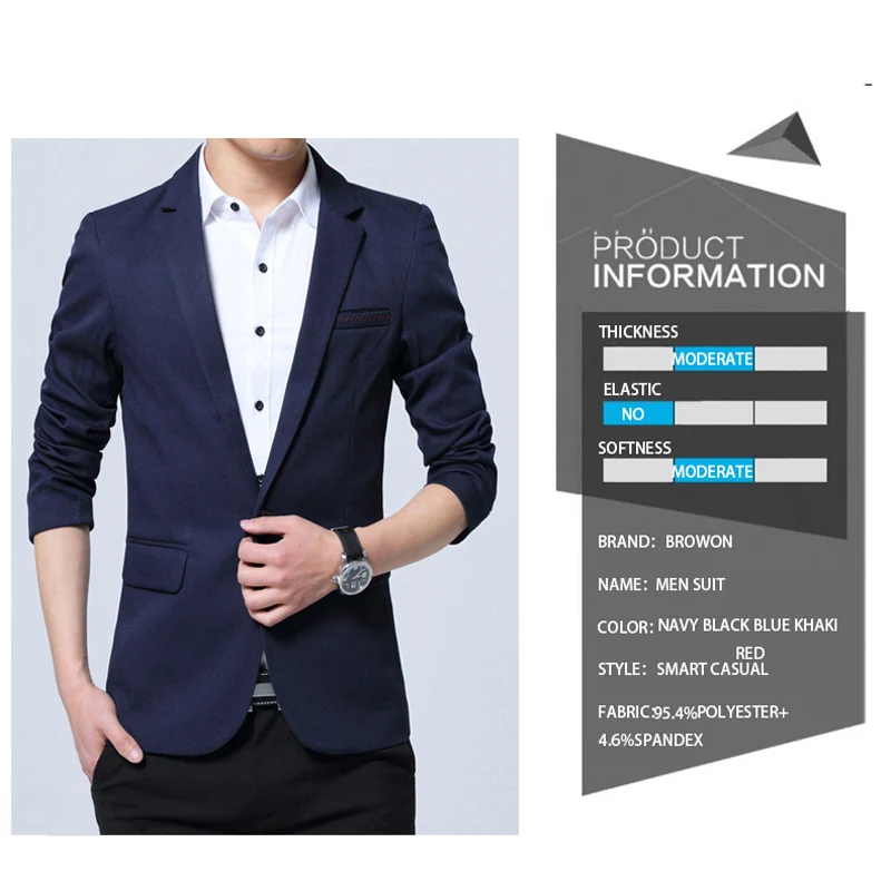Пиджак BROWON Мужской приталенный на одной пуговице, хлопковый пиджак, вечерний и свадебный костюм, роскошная одежда, большие размеры, весна-осень