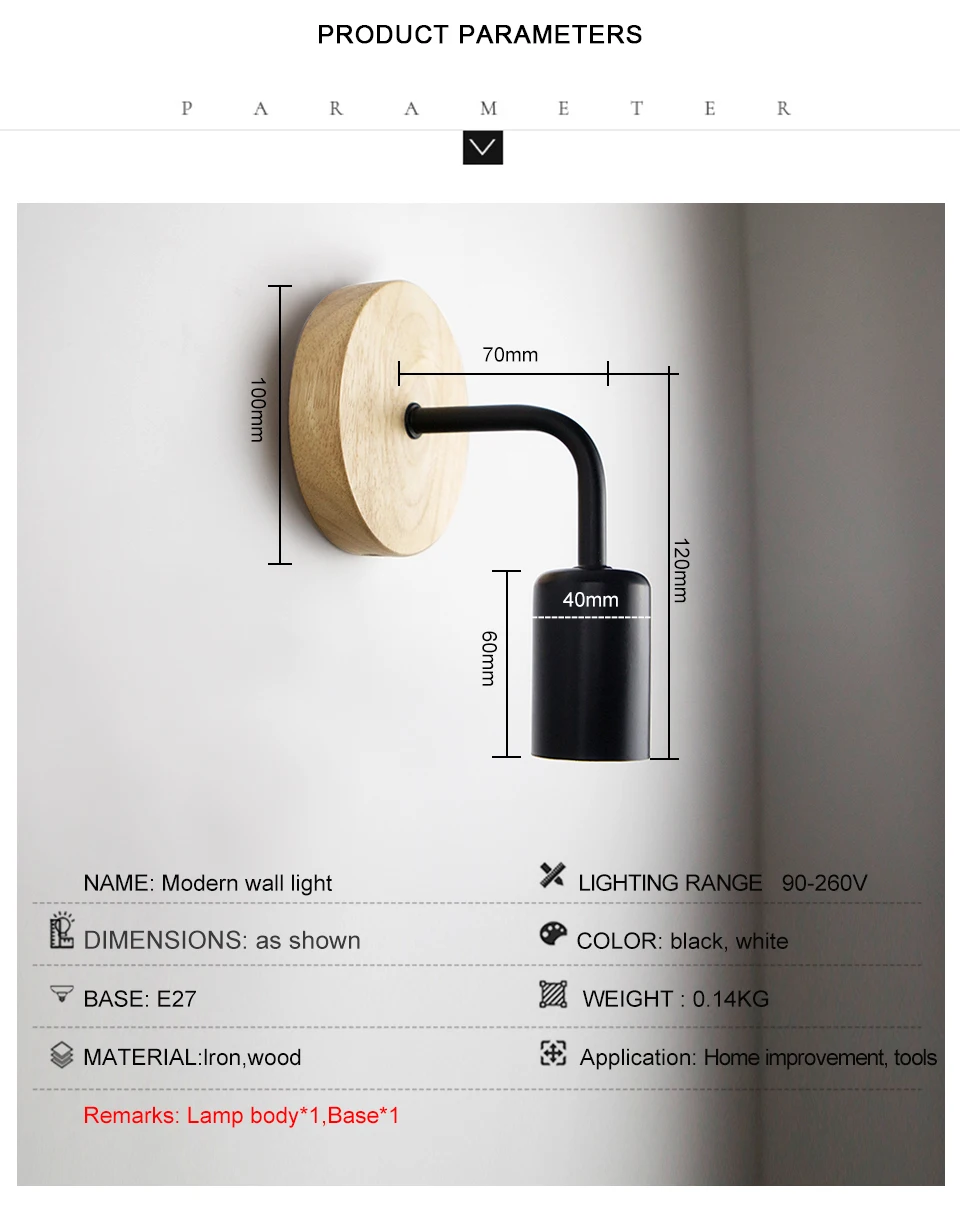 Скандинавская деревянная настенная лампа E27 в стиле ретро, прикров...