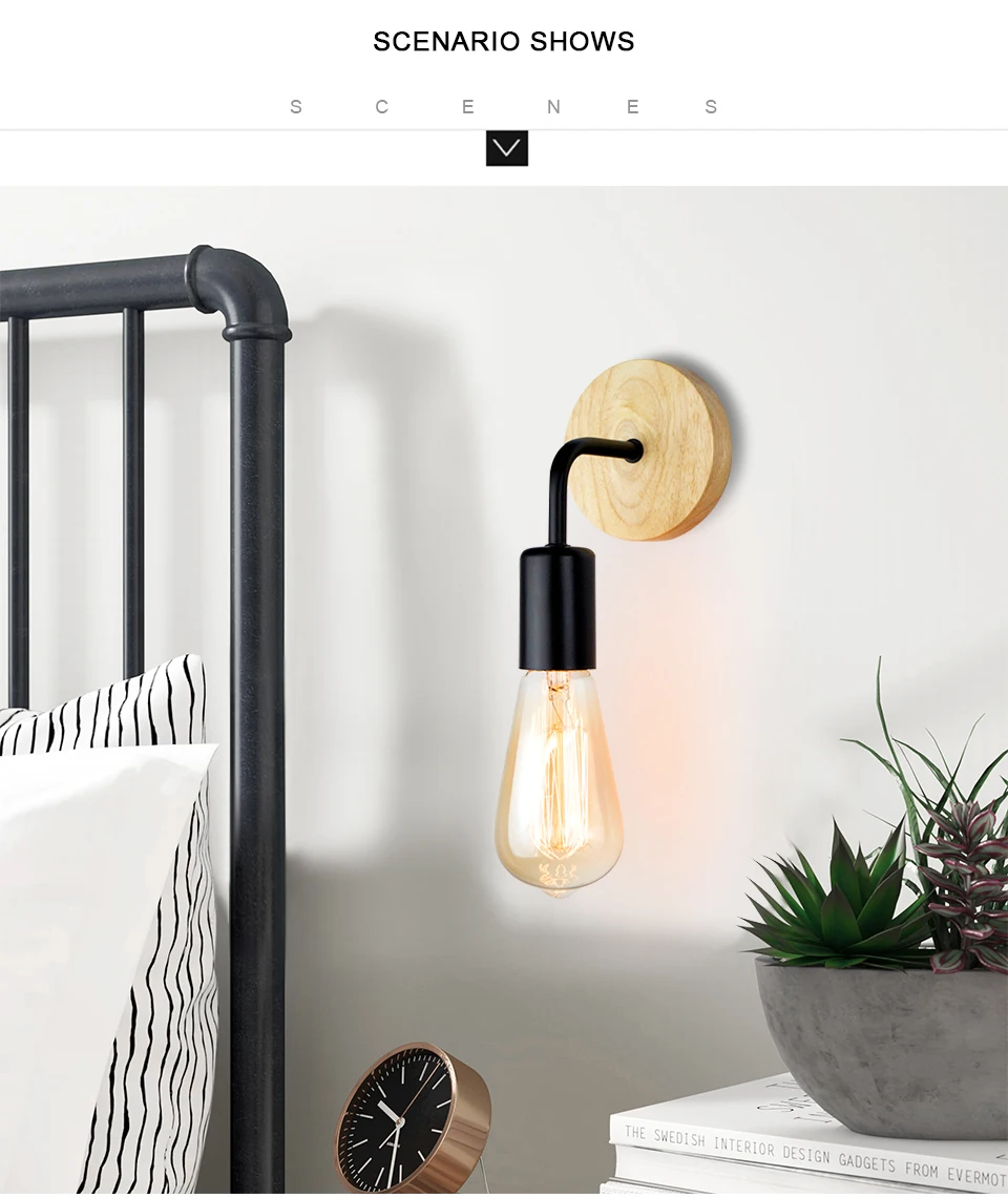 Деревянный настенный светильник Ретро Бра Настенные светильники приспособление промышленное освещение E27 прикроватная лампа Столовая Спальня Свет домашний декор
