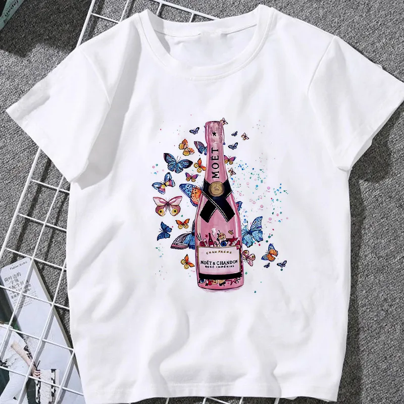 Футболка женская с принтом шампанского, модная повседневная Уличная одежда в стиле Харадзюку, лето