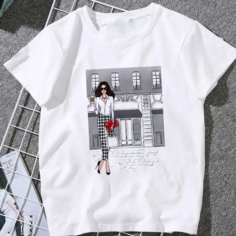 Женская футболка с мультипликационным принтом, Повседневная футболк...