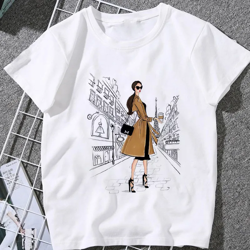 Модная женская Повседневная футболка из 100% хлопка с принтом Париж...