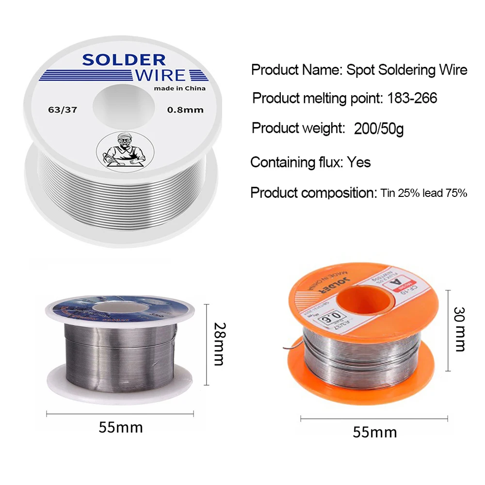 Проволока для пайки, Оловянно-свинцовая проволока 50100 г200 г, бухта провода для пайки с канифольным ядром, 0,60,81121 мм, 6337 флюс 2.0%, 45 футов