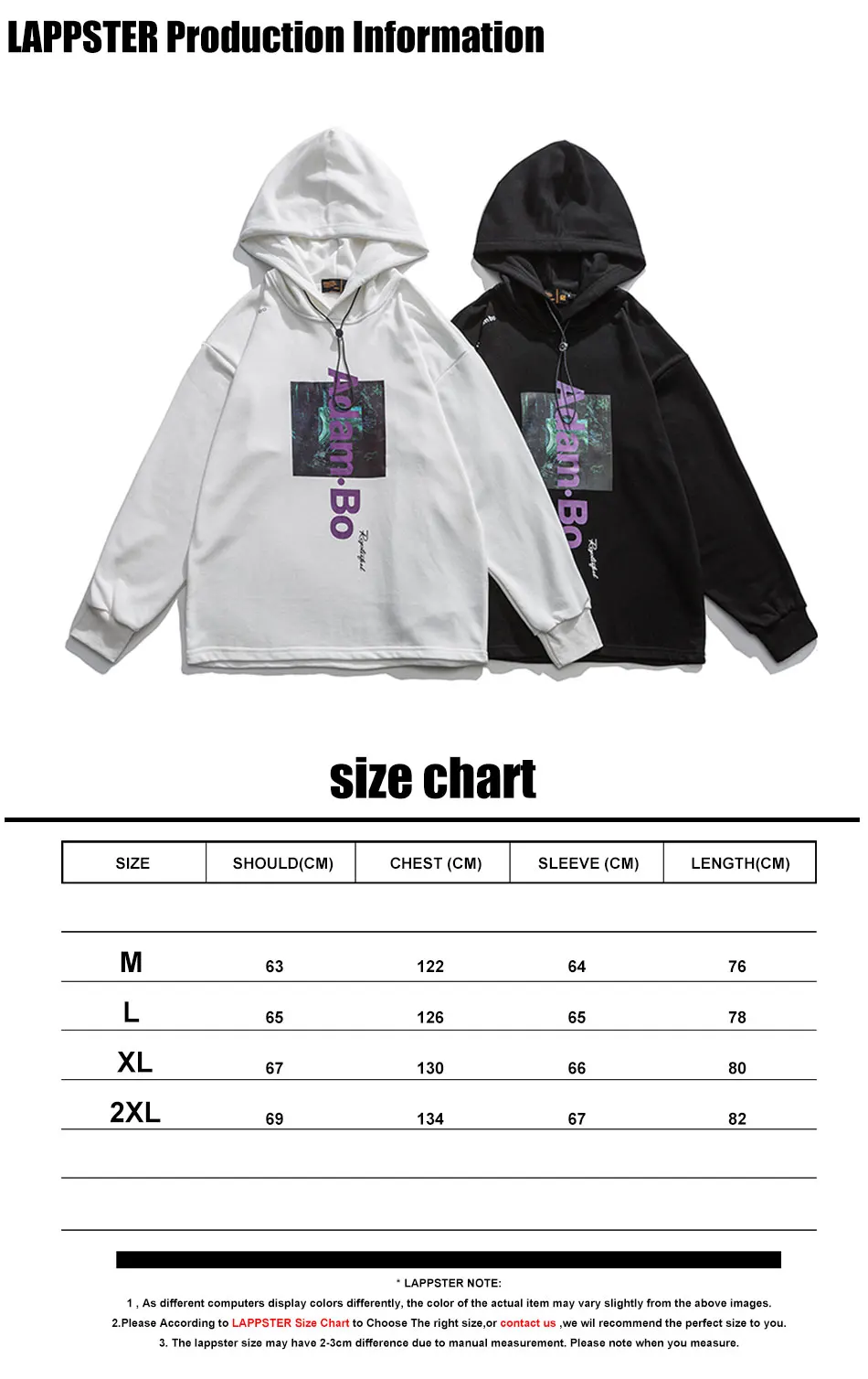Толстовка LAPPSTER мужская с капюшоном, пуловер в стиле Харадзюку, худи с графическим принтом, черная хлопковая кофта, уличная одежда, осень 2022