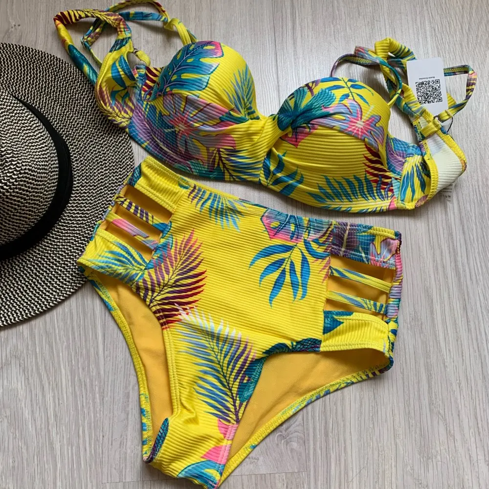 Riseado, комплект бикини с высокой талией, сексуальный купальник для женщин, пуш-ап, купальник, новинка 2022, ребристый бикини, женский купальник с принтом листьев, летний