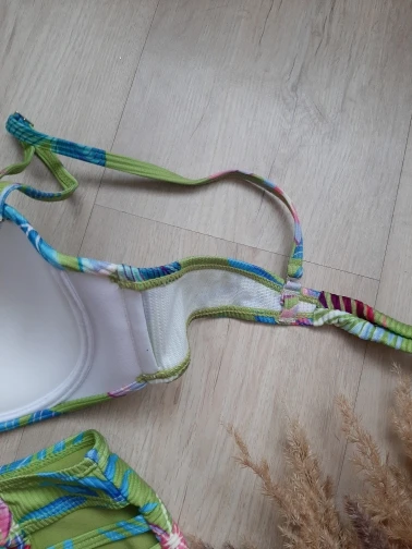 Итак,у продавца на выбор есть три расцветки. Не прочитав отзывы,я заказала стандартно свой размер S на параметры 88-67-90 и рост 158см. Заказ продавец отправил быстро,трек номер прослеживался.Доставка полтора месяца в Беларусь. Купальник хорошего качества. Материал спандекс,ткань в рубчик. Плотная ,практически не тянется. Плавки на свои бедра чуть надела и в этом ошибка,так как в отзывах писали, что купальник маломерка. Высокая посадка,по бокам интересно выполнены. Вверх же наоборот чуть большой. В чашках есть поролон, шлейки регулируются ,сзади завязывается. Красивая и яркая расцветка,которая притягивает взгляды. Купальник рекомендую к покупке.